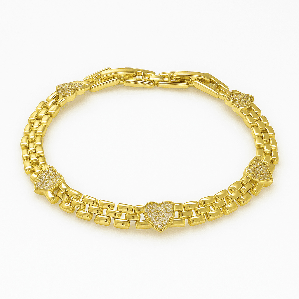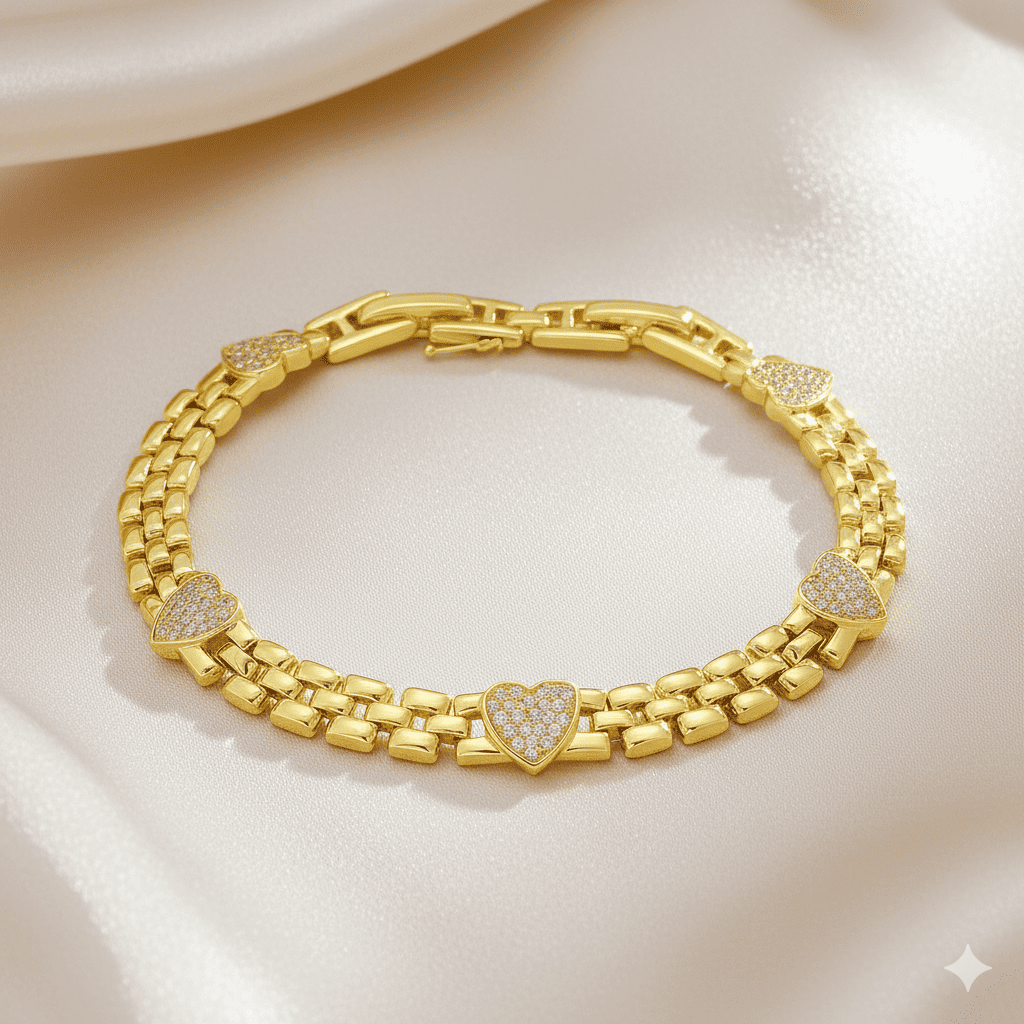 Kadın Tam Tur Xuping Bileklik - Kalp Detaylı - Beyaz Zirkon Taşlı - Altın Renk