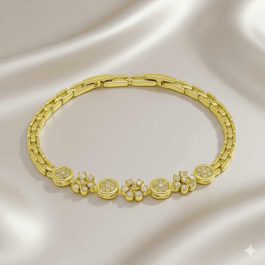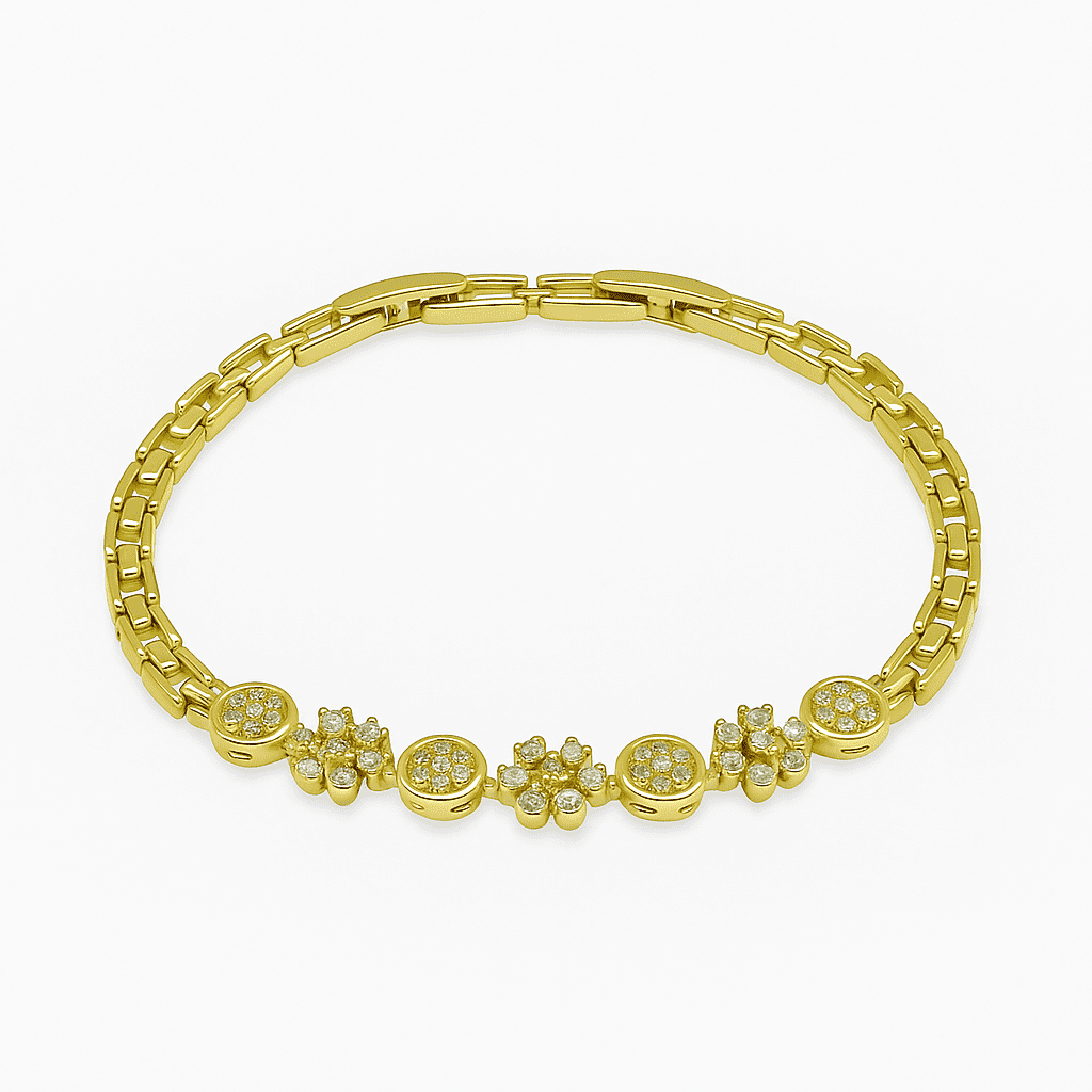 Kadın Tam Tur Xuping Bileklik - Kır Çiçeği Detaylı - Beyaz Zirkon Taşlı - Altın Renk