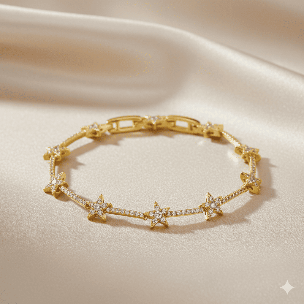 Kadın Tam Tur Xuping Bileklik - Kuzey Yıldızı Detaylı - Beyaz Zirkon Taşlı - Altın Renk