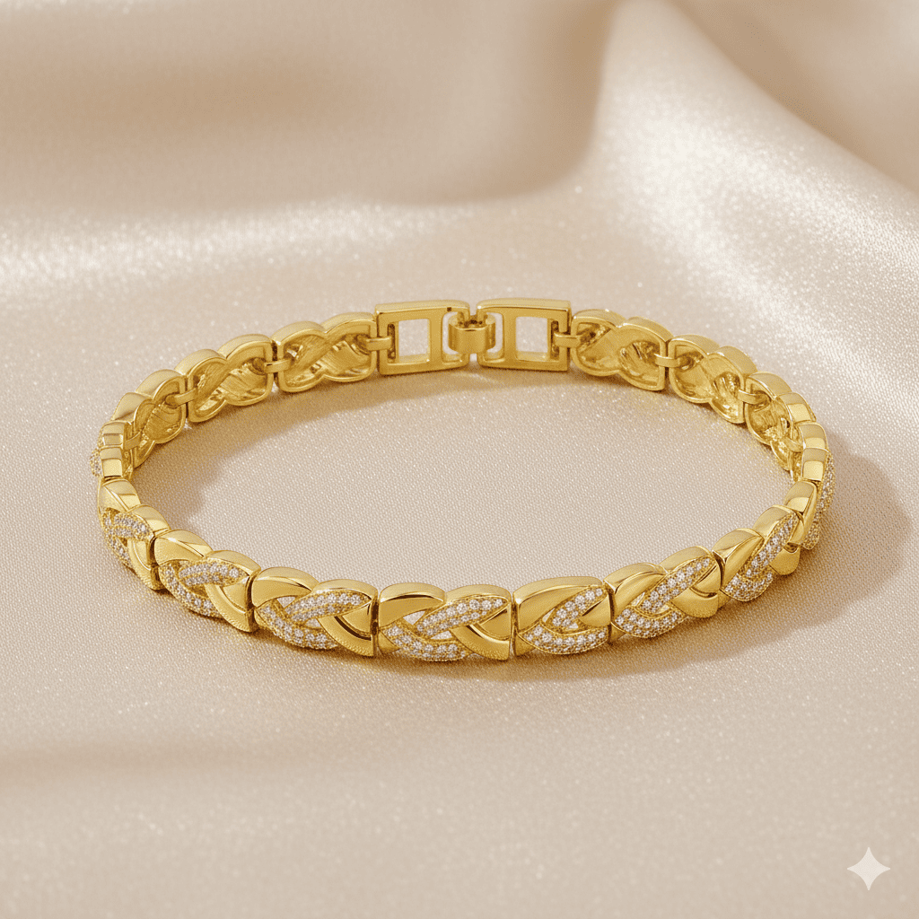 Kadın Tam Tur Xuping Bileklik - Sonsuzluk Model - Beyaz Zirkon Taşlı - Altın Renk