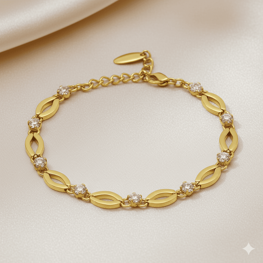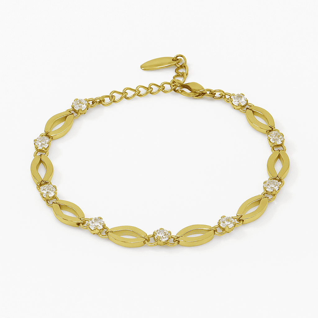 Kadın Tam Tur Xuping Bileklik - Tigers Eye Model - Beyaz Zirkon Tek Taş Detaylı - Altın Renk