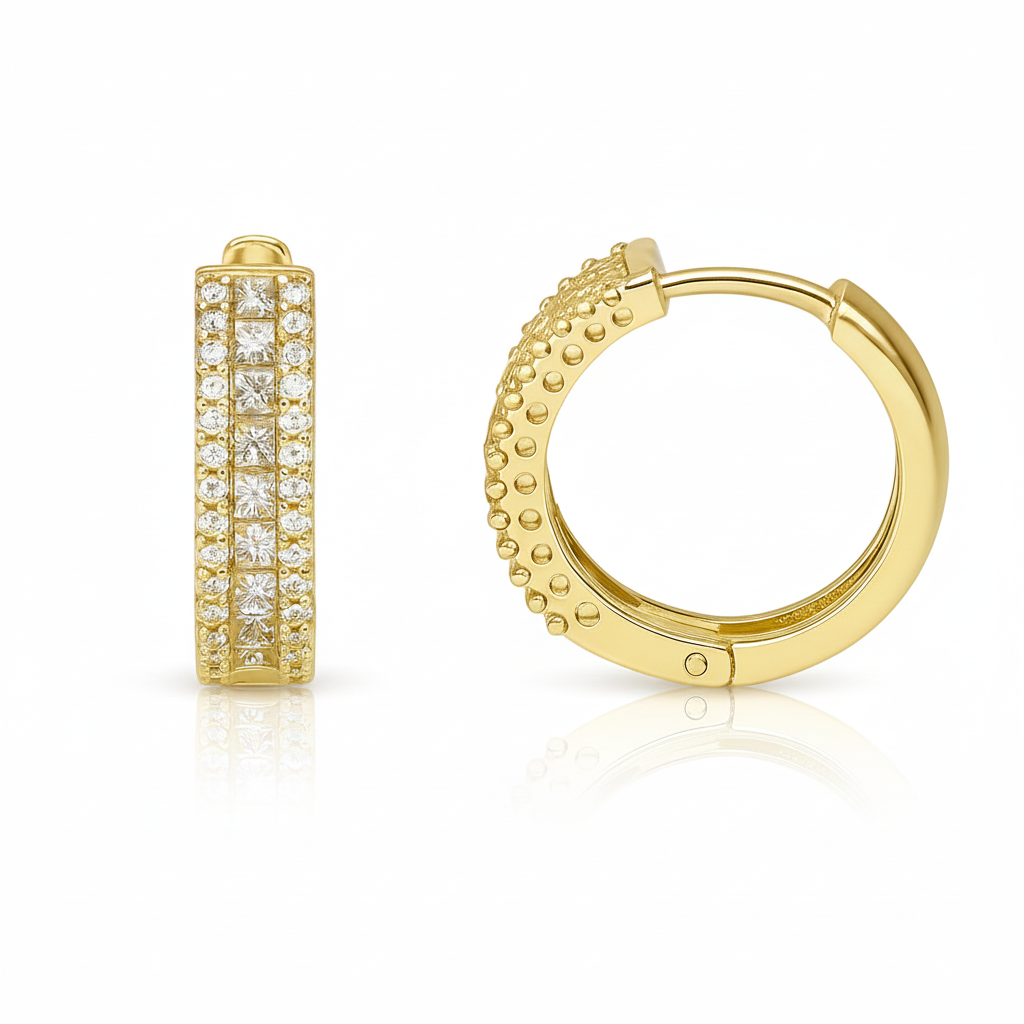 Kadın Xuping Çelik Küpe - 3 Sıra Tasarım - Beyaz Zirkon Taşlı - Altın Renk