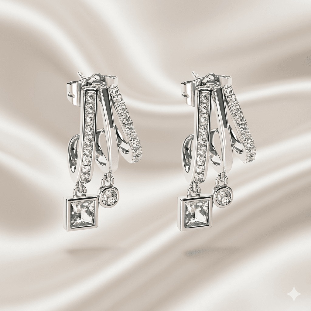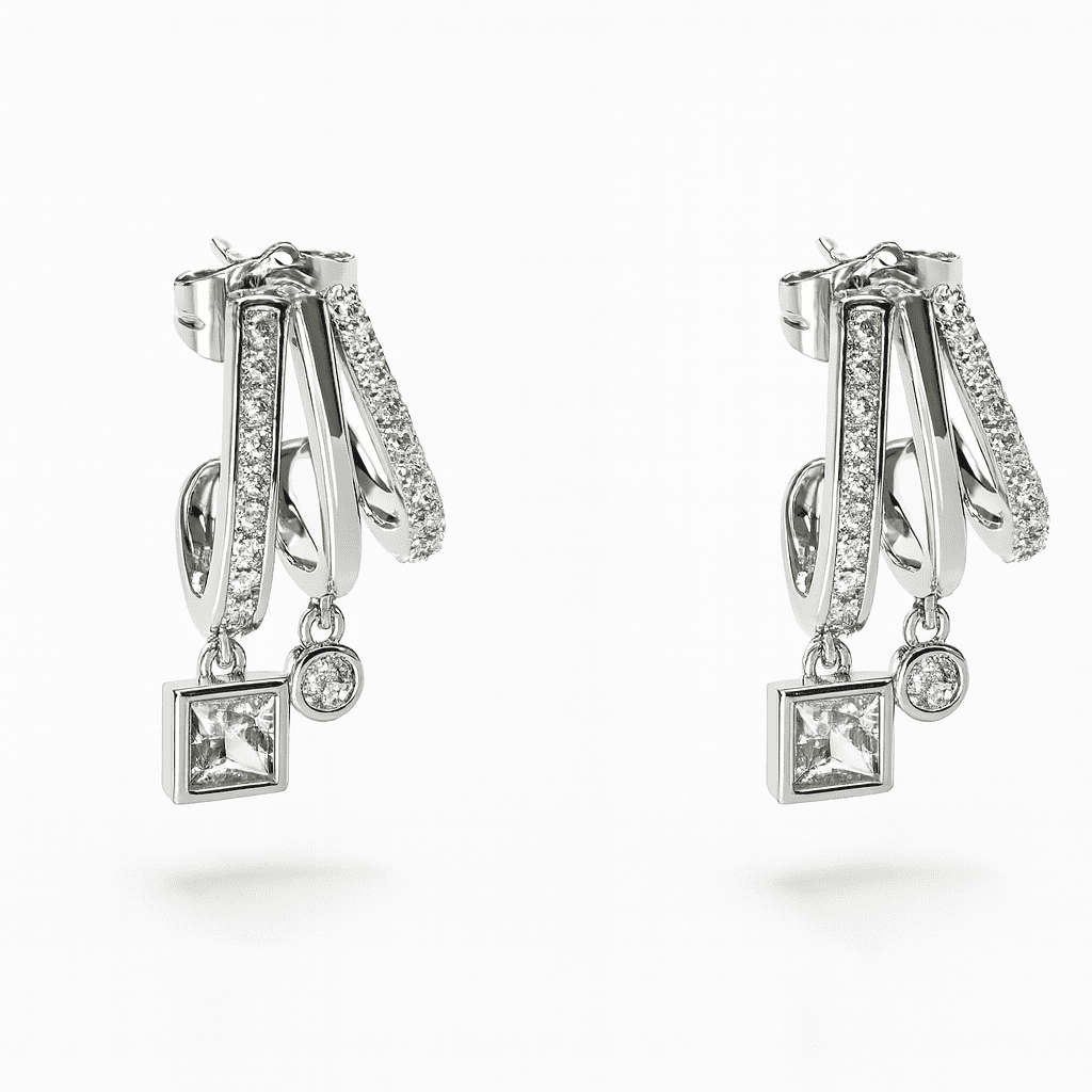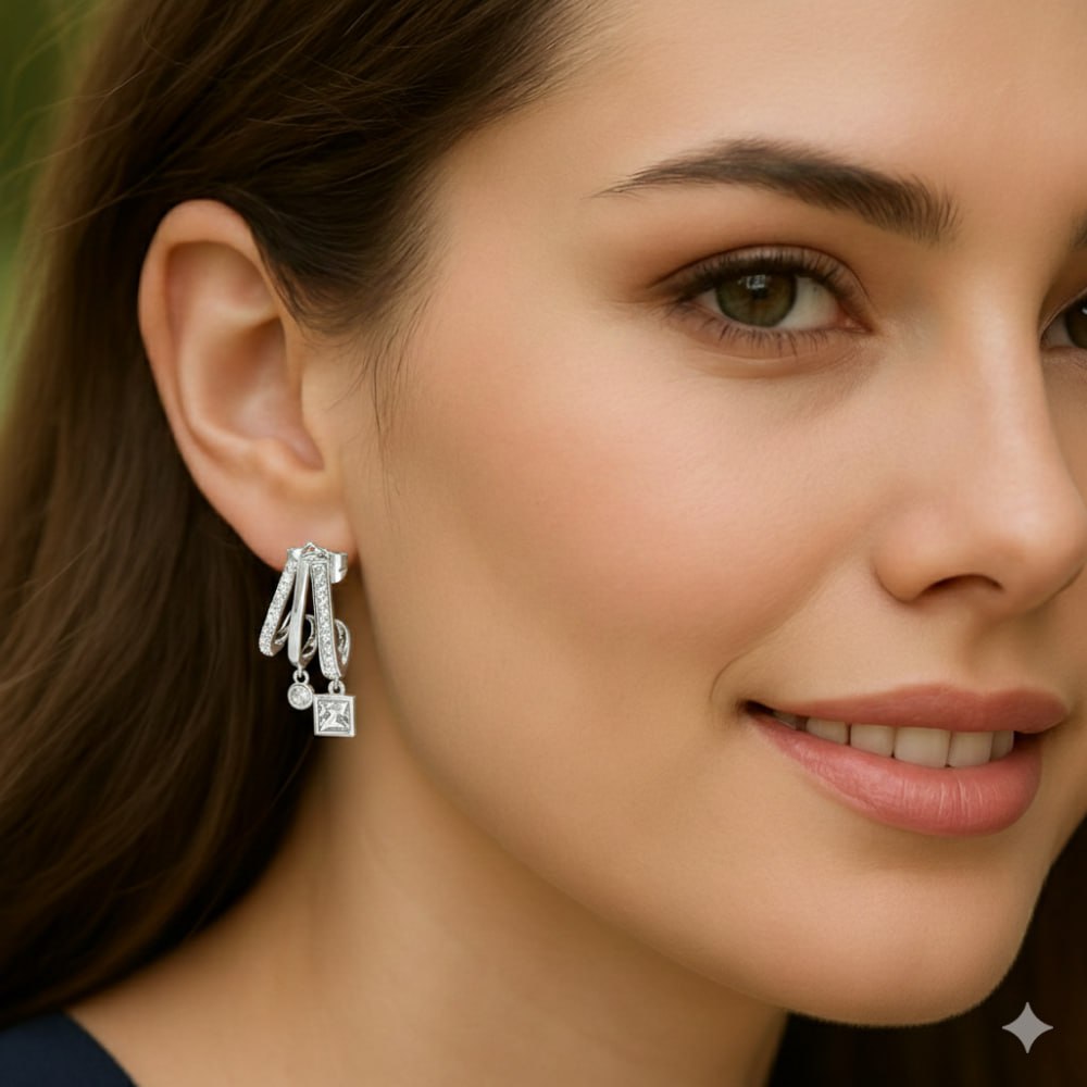 Kadın Xuping Çelik Küpe - 3 Sıra Tasarım - Beyaz Zirkon Taşlı - Gümüş Renk