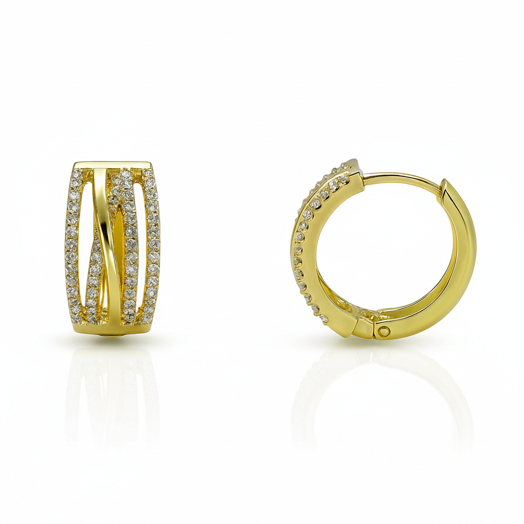 Kadın Xuping Çelik Küpe - 4 Sıra Tasarım - Sıralı Beyaz Zirkon Taşlı - Altın Renk