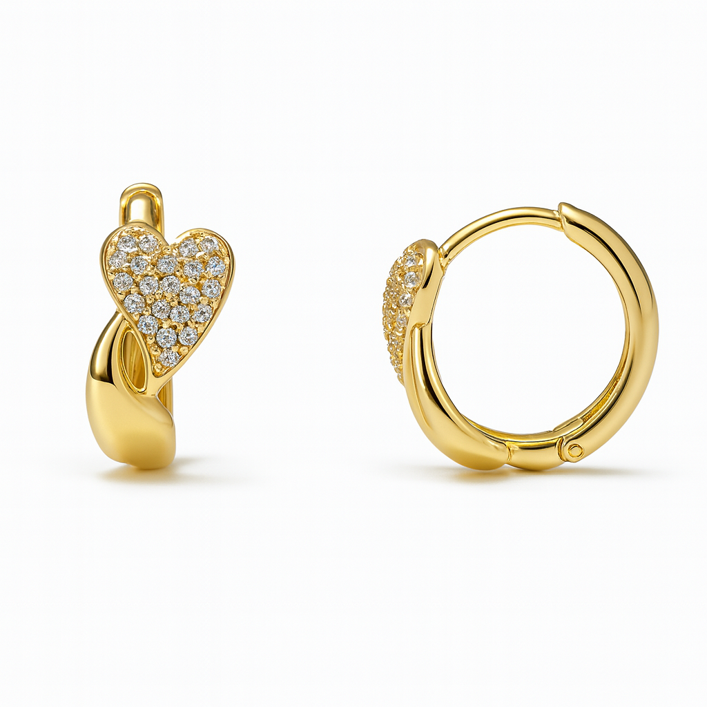 Kadın Xuping Çelik Küpe - Kalp Tasarım - Sıralı Beyaz Zirkon Taşlı - Altın Renk