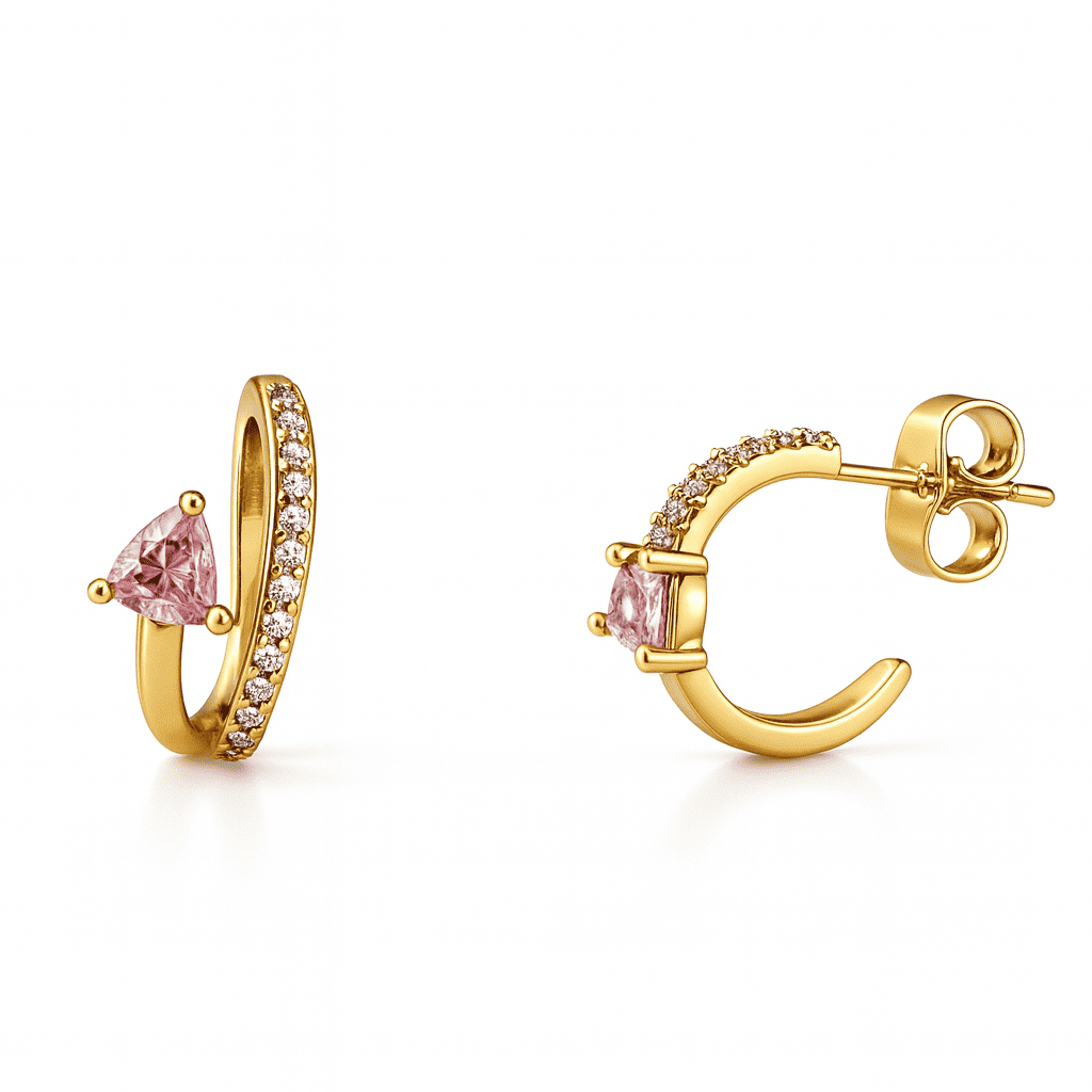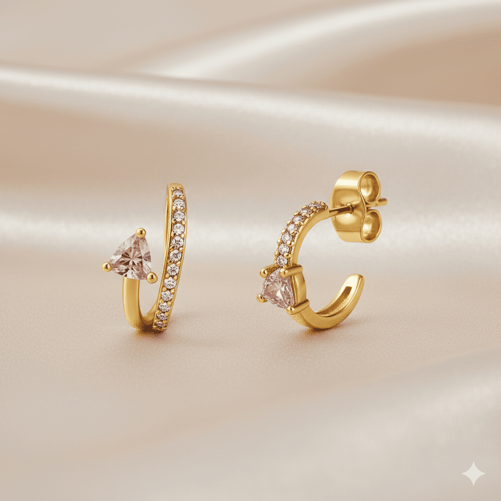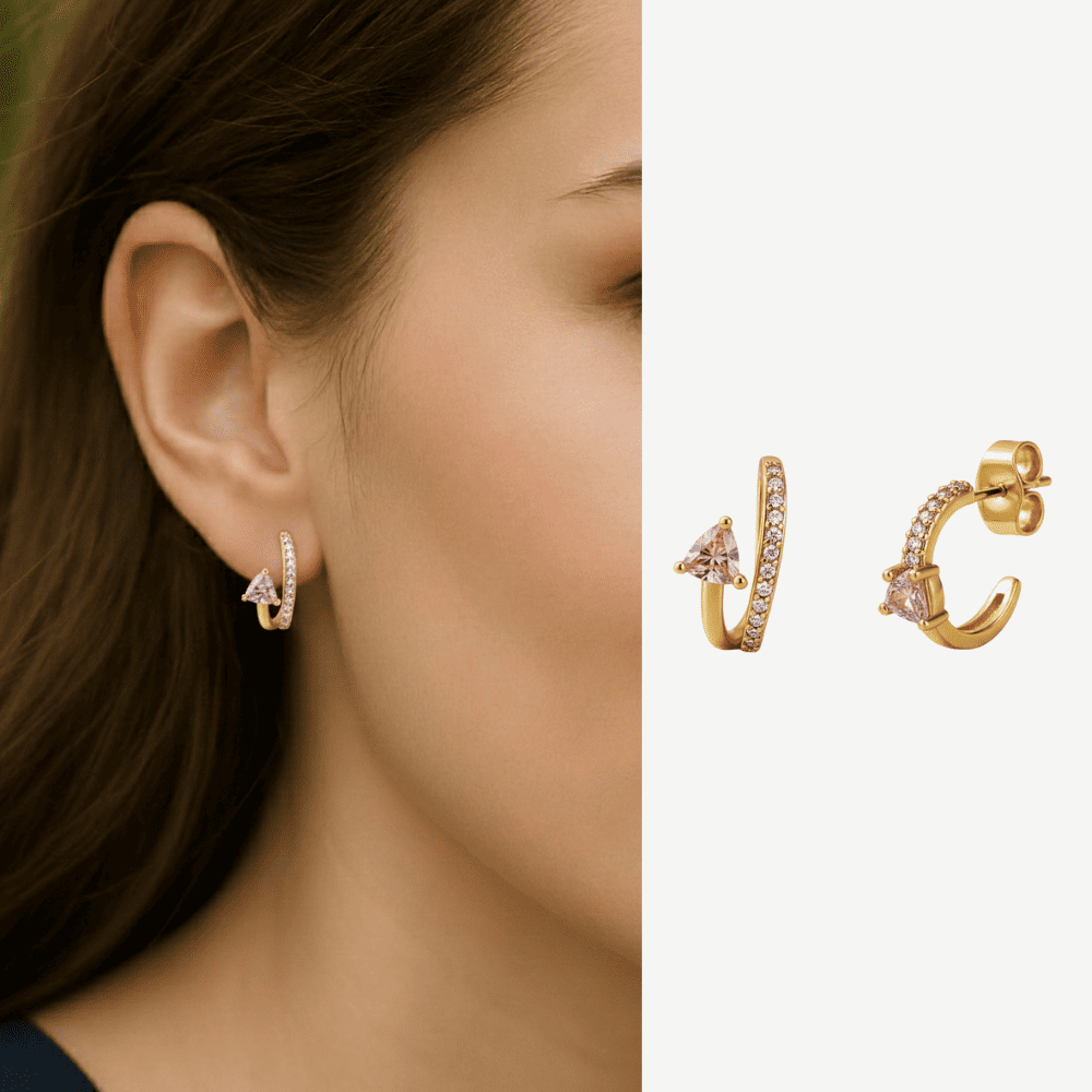 Kadın Xuping Çelik Küpe - Tektaş Model - Sıralı Beyaz Zirkon Taşlı - Altın Renk