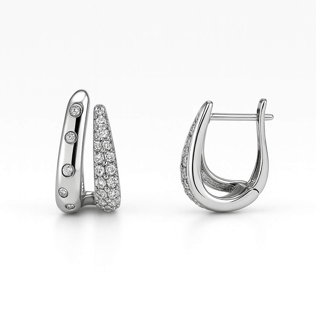 Kadın Xuping Çelik Küpe - V Tasarım - Beyaz Zirkon Taşlı - Gümüş Renk
