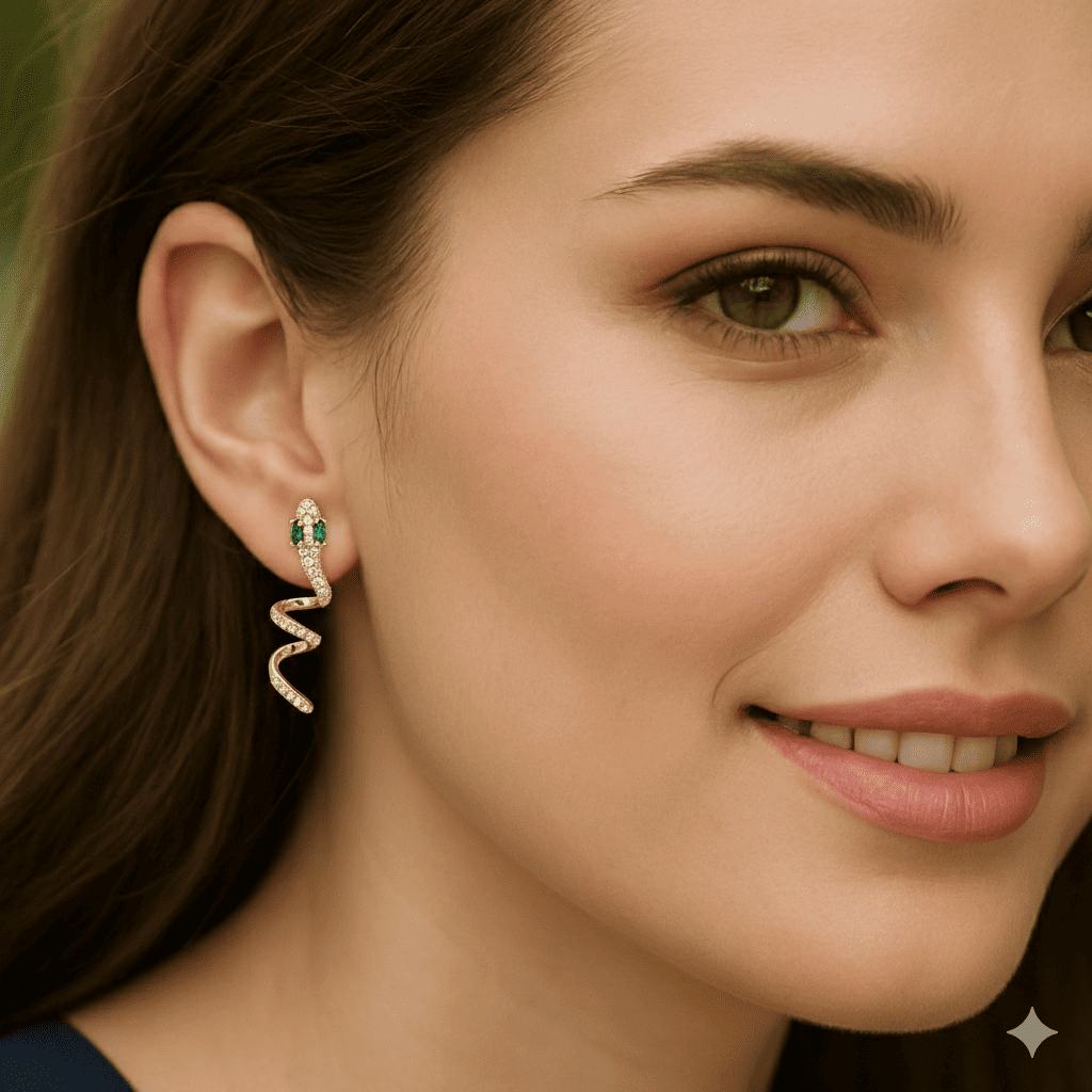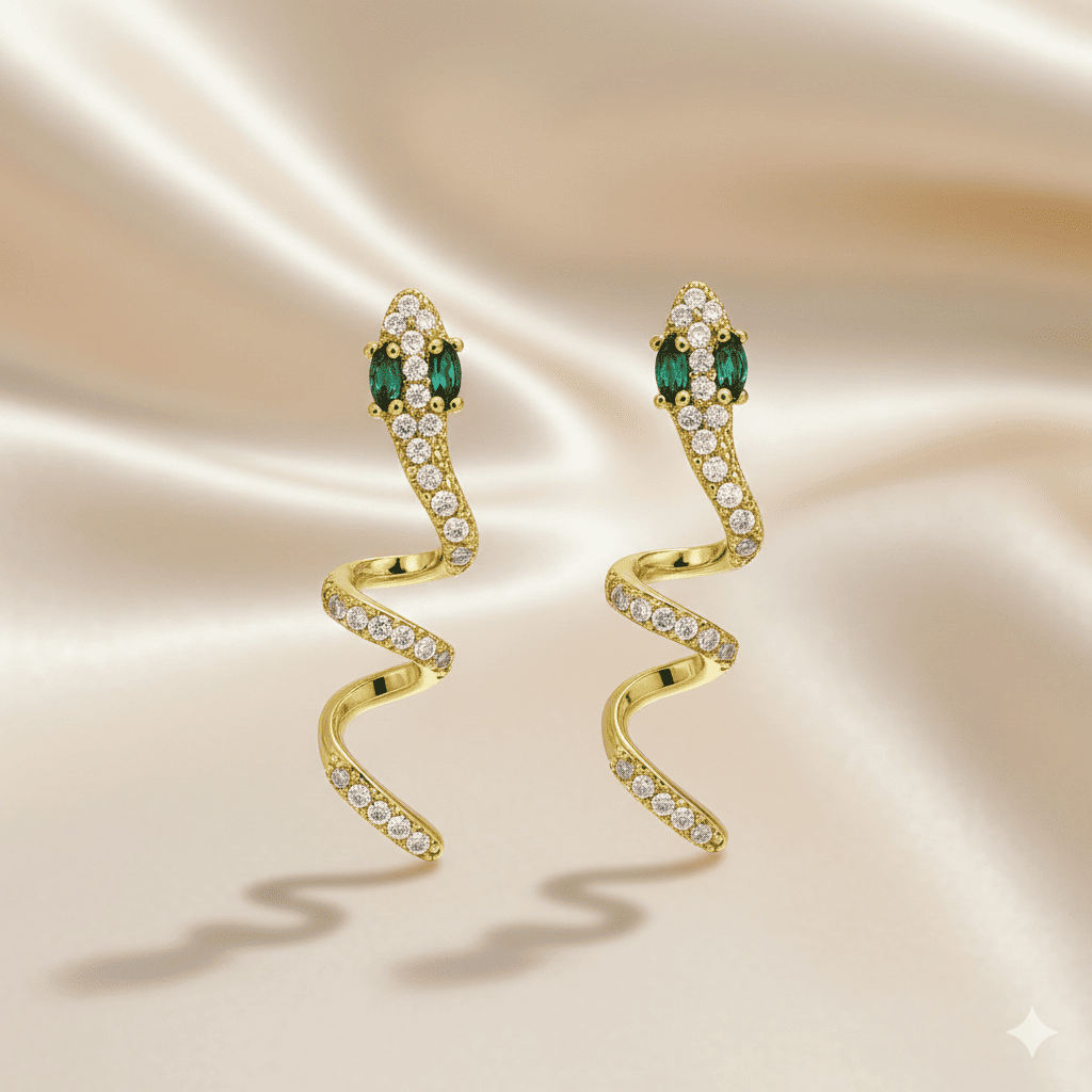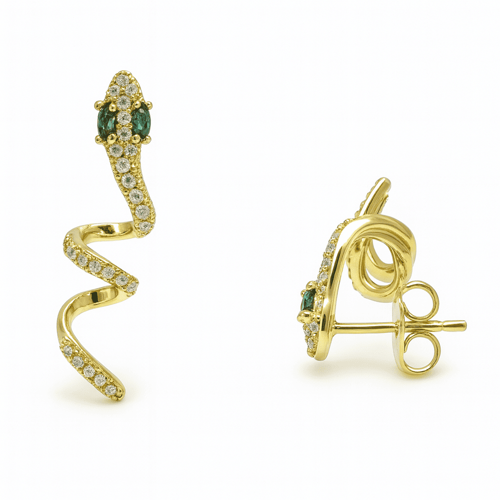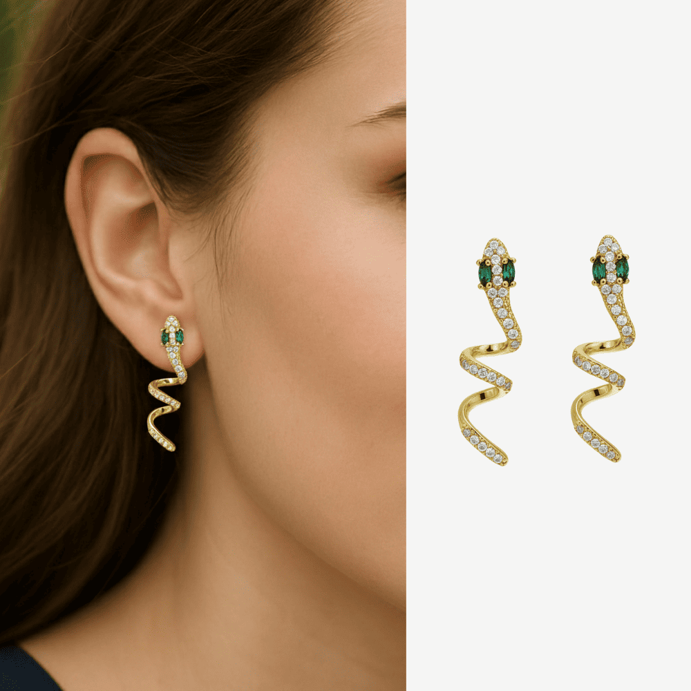 Kadın Xuping Çelik Küpe - Yılan Tasarım - Beyaz Zirkon Taşlı - Altın Renk