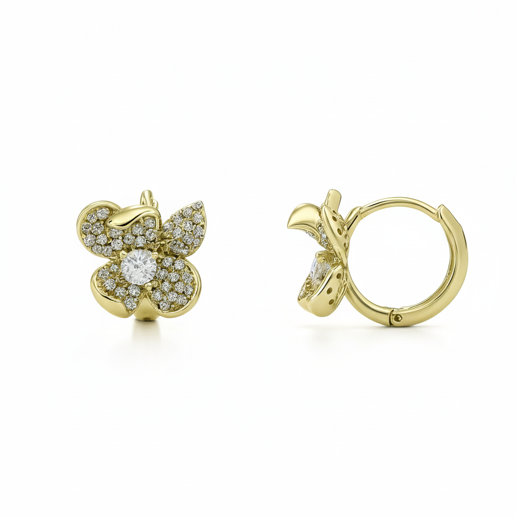 Kadın Xuping Çelik Küpe - Yonca Yaprağı Tasarım - Beyaz Zirkon Taşlı - Altın Renk