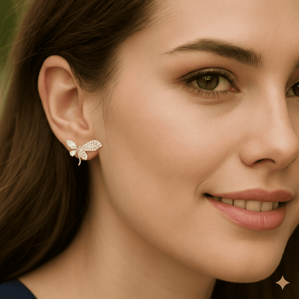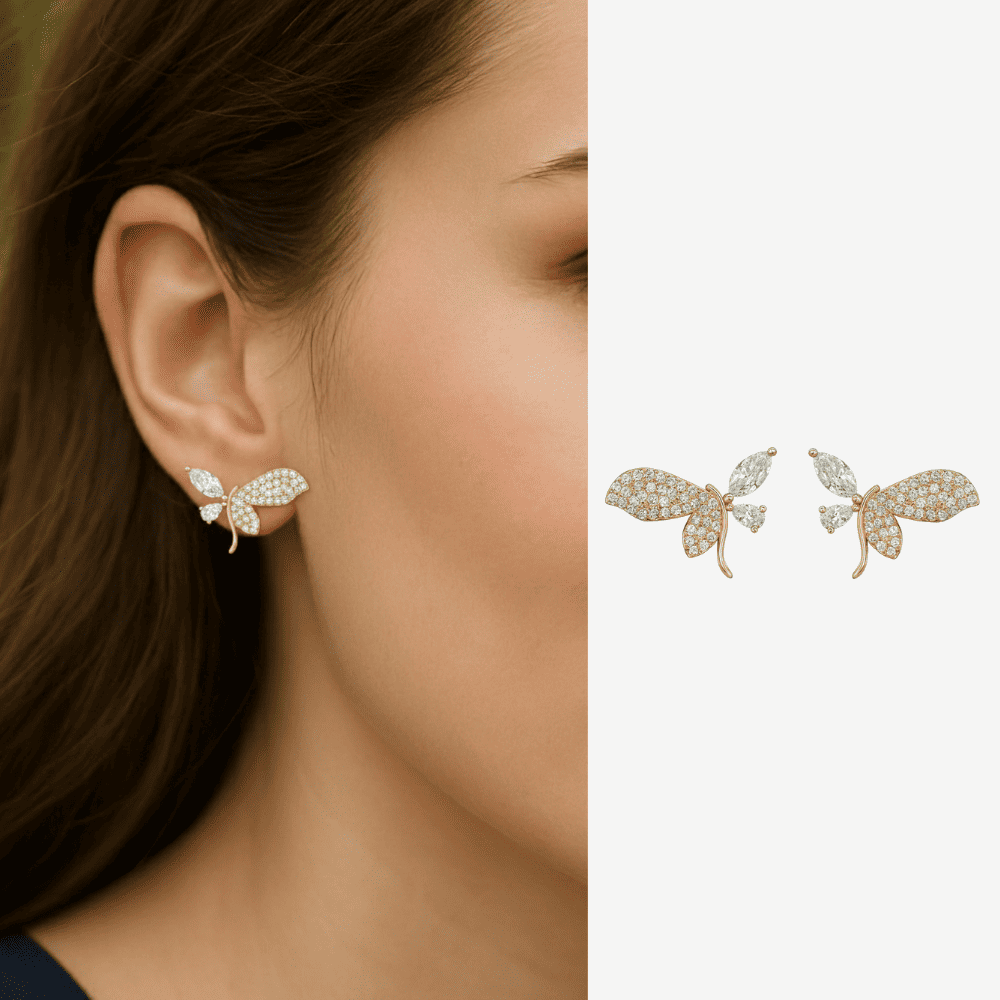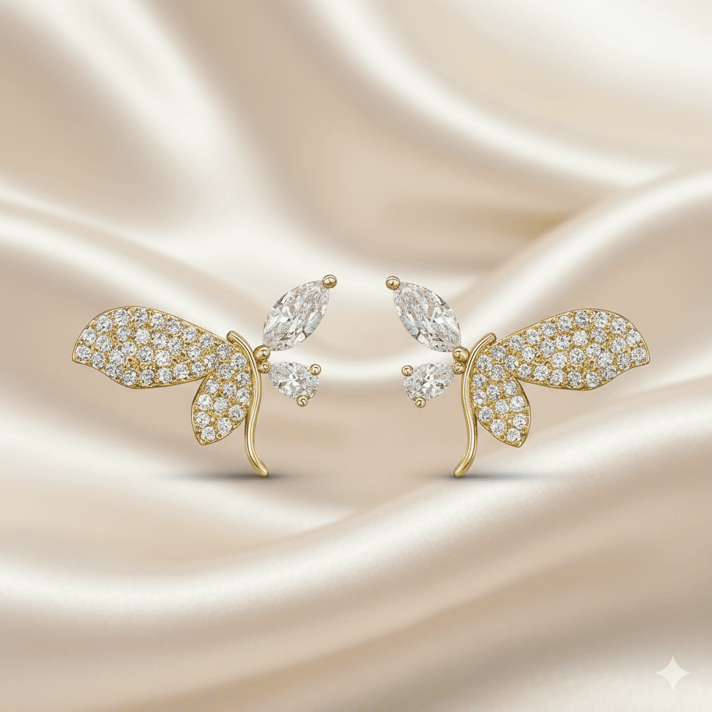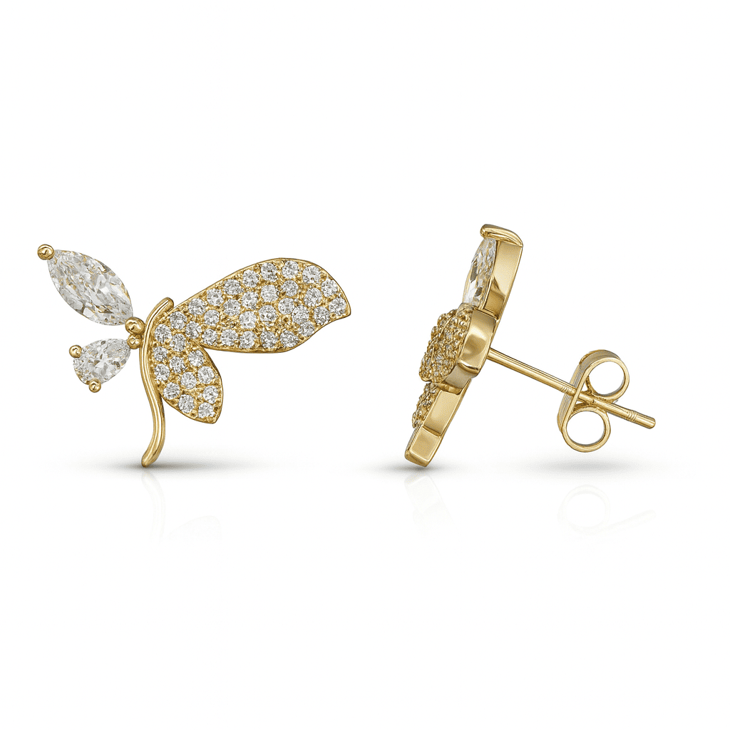 Kadın Xuping Çelik Küpe - Yusufcuk Tasarım - Beyaz Zirkon Taşlı - Altın Renk