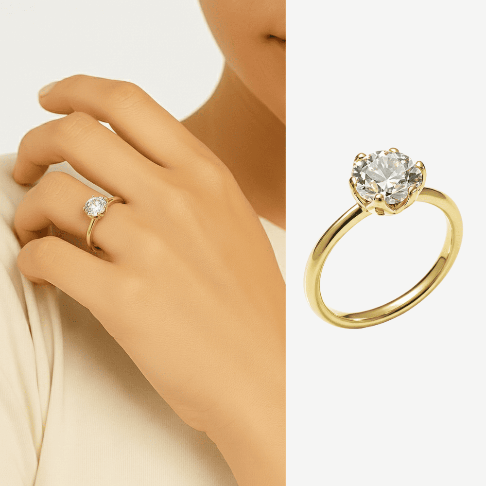 Kadın Xuping Çelik Tektaş Yüzük - Beyaz Zirkon Taşlı - Altın Renk - 19 Ölçü