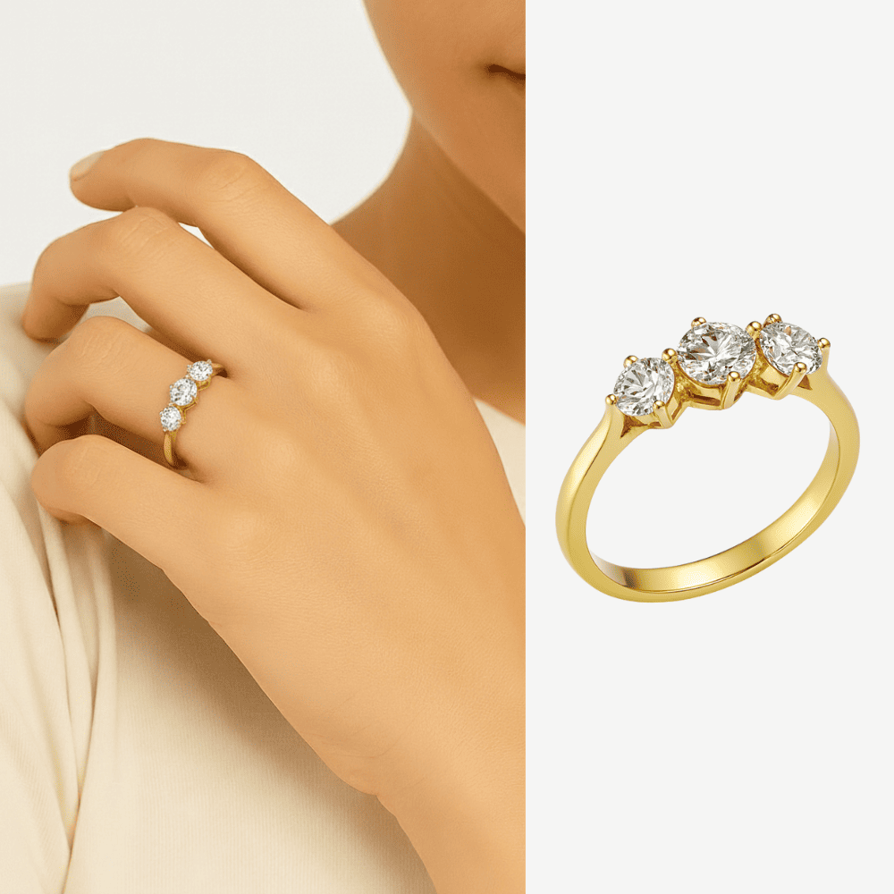 Kadın Xuping Çelik Tria Yüzük - Beyaz Zirkon Taşlı - Altın Renk - 14 Ölçü