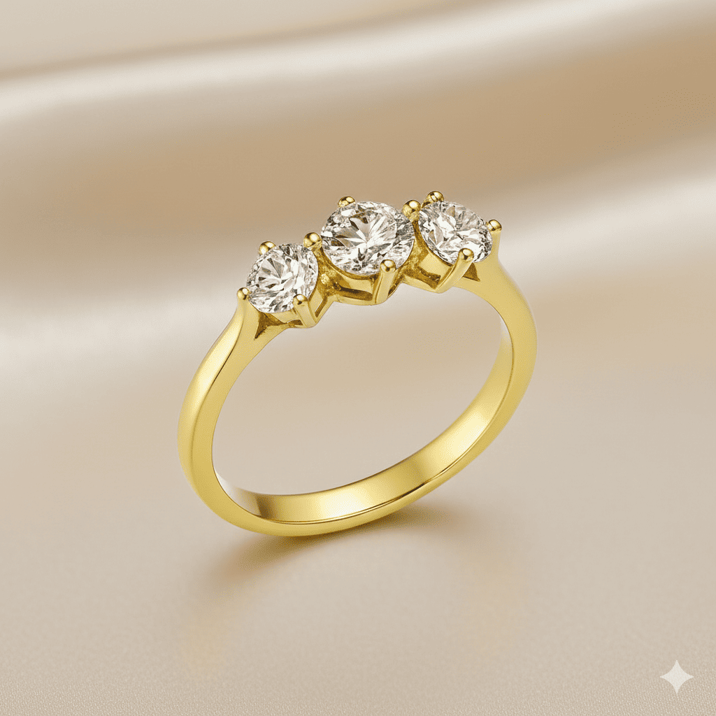 Kadın Xuping Çelik Tria Yüzük - Beyaz Zirkon Taşlı - Altın Renk - 17 Ölçü