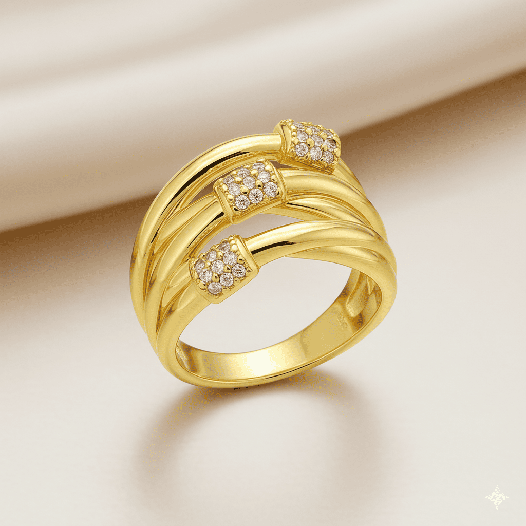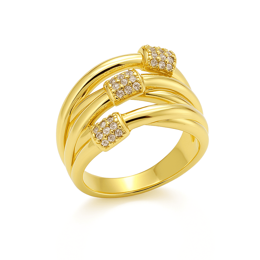 Kadın Xuping Çelik Yüzük - 3 lü Tasarım - Sıralı Beyaz Zirkon Taşlı - Altın Renk - 12 Ölçü