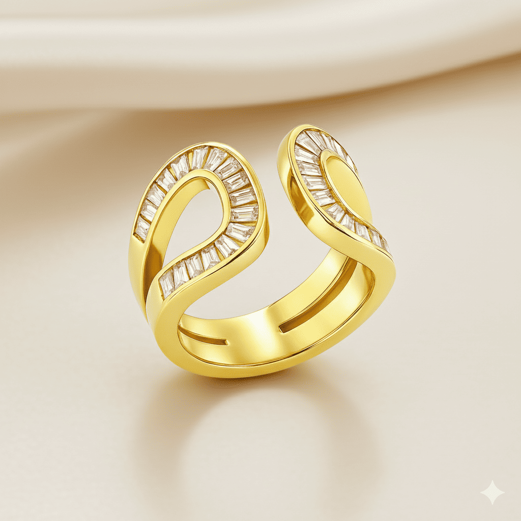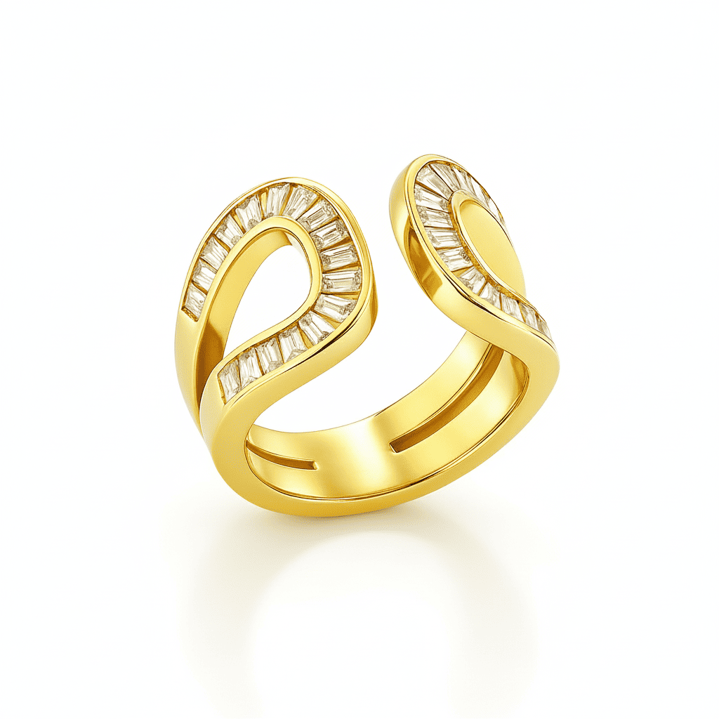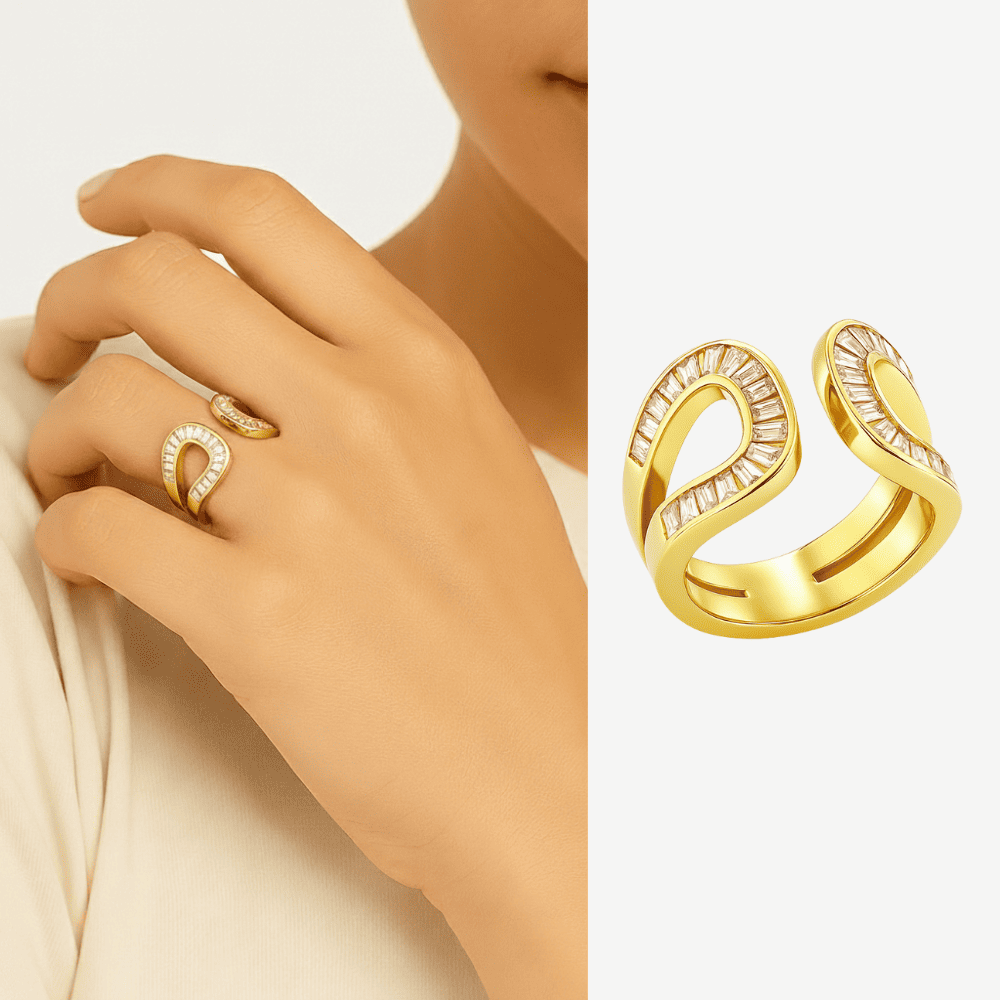 Kadın Xuping Çelik Yüzük - Baget Kesim Beyaz Zirkon Taşlı - Altın Renk - Ayarlanabilir Ölçü