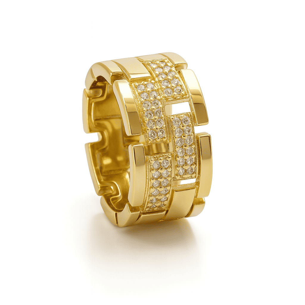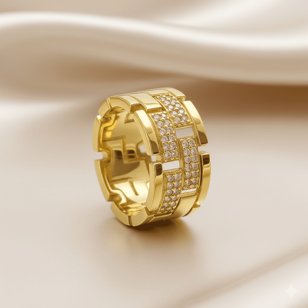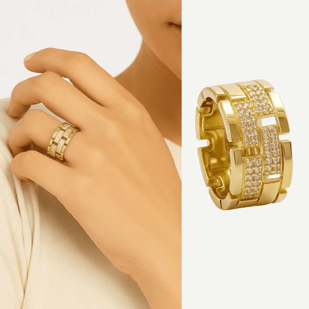 Kadın Xuping Çelik Yüzük - Greek Desenli - Beyaz Zirkon Taşlı - Altın Renk - 14 Ölçü