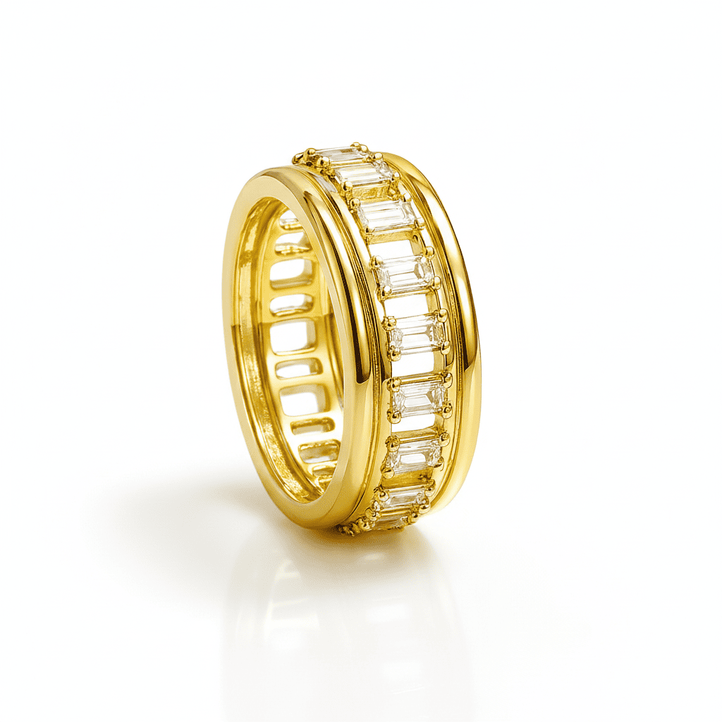 Kadın Xuping Çelik Yüzük - Tam Tur Tasarım - Sıralı Beyaz Zirkon Taşlı - Altın Renk - 14 Ölçü