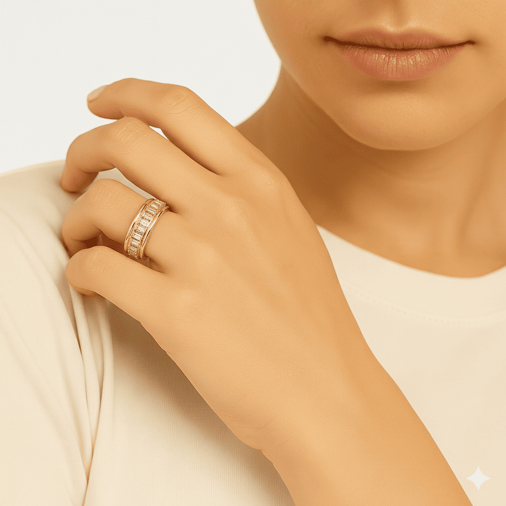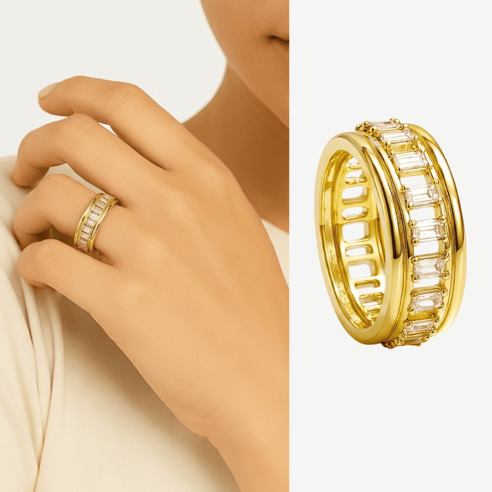 Kadın Xuping Çelik Yüzük - Tam Tur Tasarım - Sıralı Beyaz Zirkon Taşlı - Altın Renk - 19 Ölçü