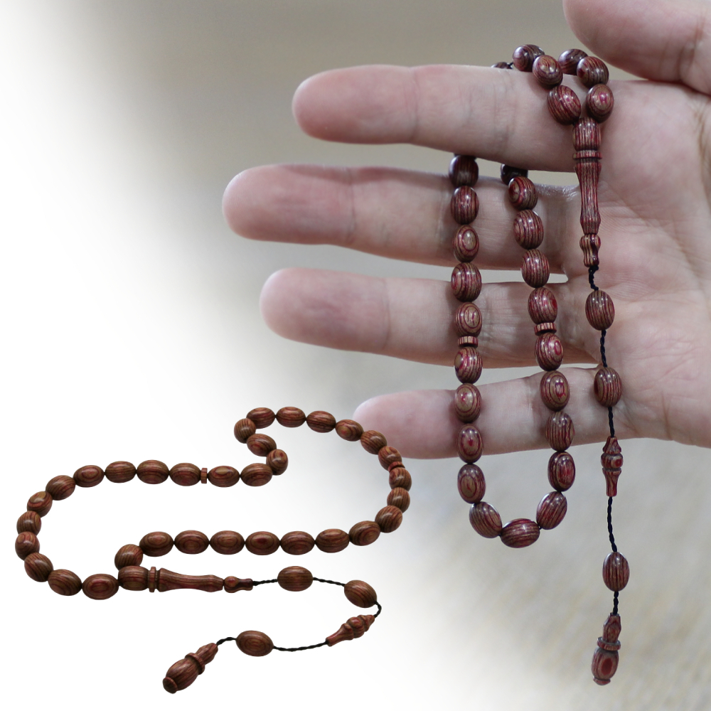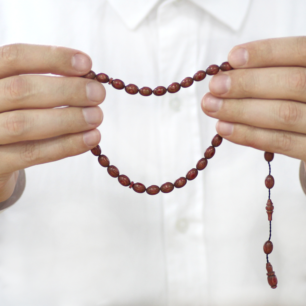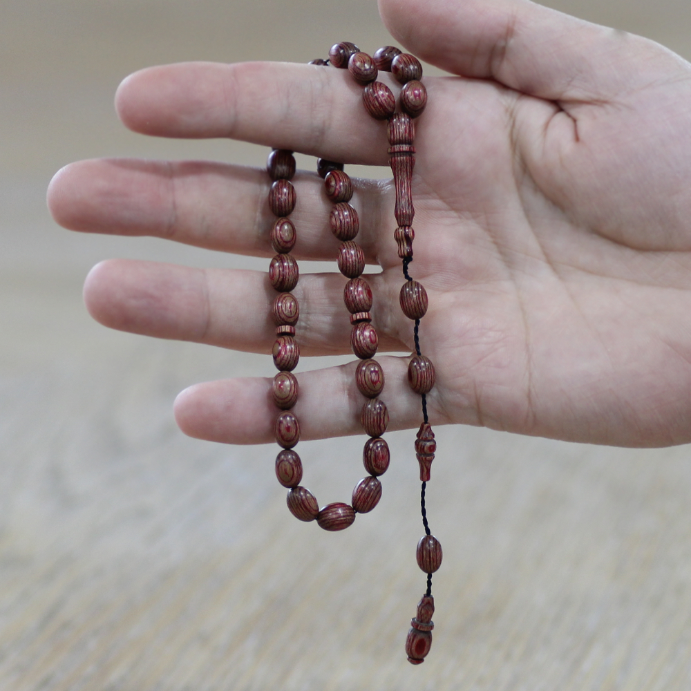 Kafur Ağacı Tesbih - Arpa Kesim - Usta İşi Sistemli - Kahverengi