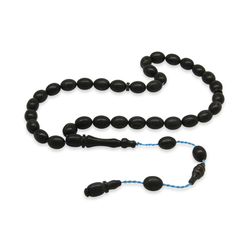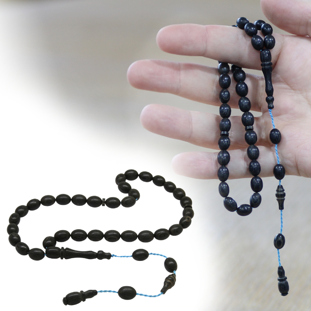 Kafur Ağacı Tesbih - Arpa Kesim - Usta İşi Sistemli - Siyah Renk