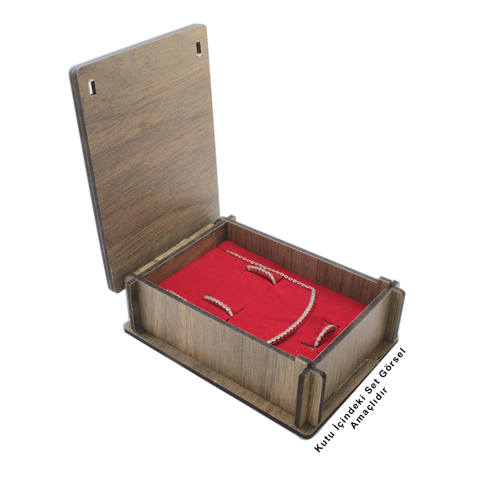 Kahverengi Ahşap Elegance Hediye Takı Seti Kutusu