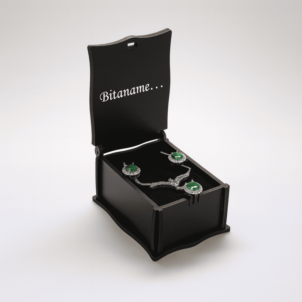 Hediye Notu Yazılı Siyah Ahşap Kolye Küpe Bileklik Set Hediye Takı Kutusu - M1