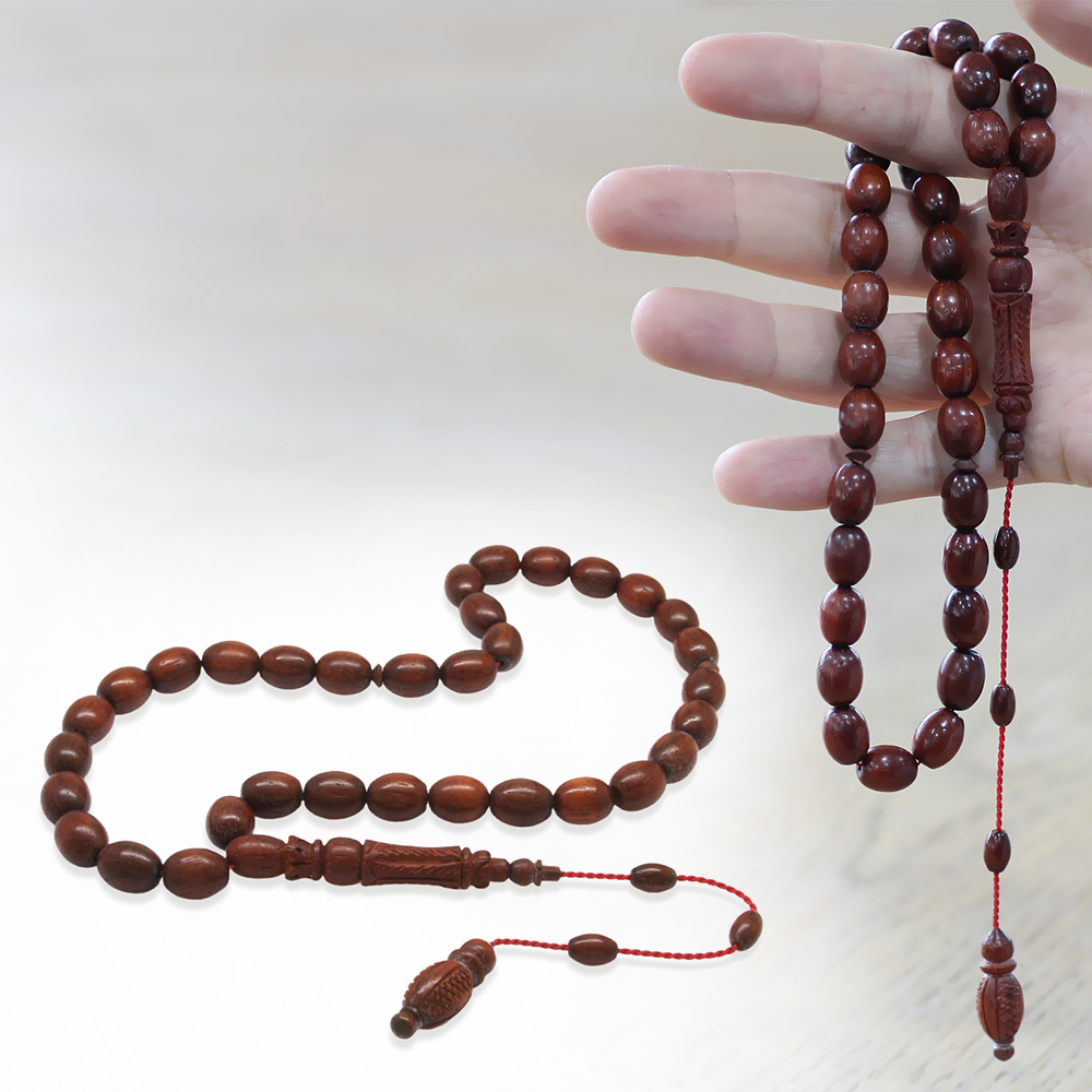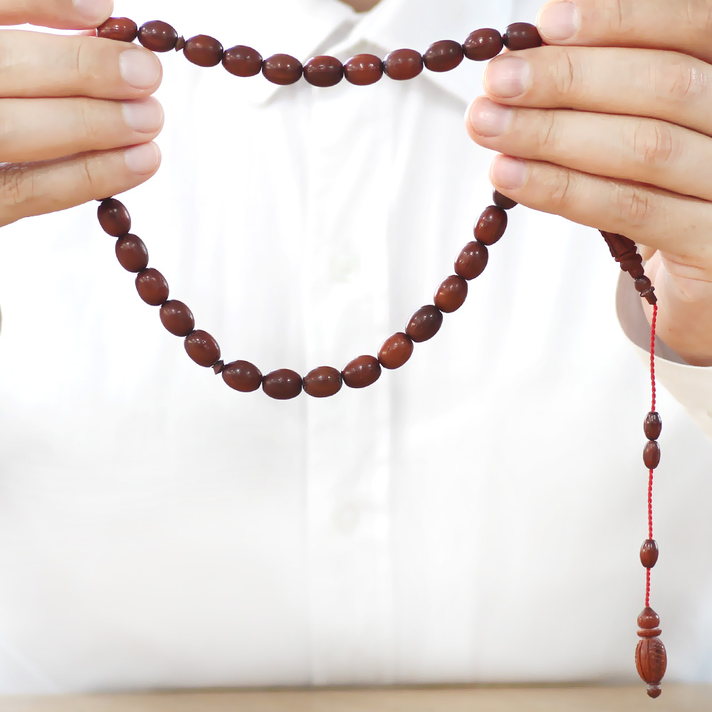 Kan Ağacı Tesbih - Koleksiyonluk - Sistemli - Usta İşçilikli - Kahverengi - Özel Kesim