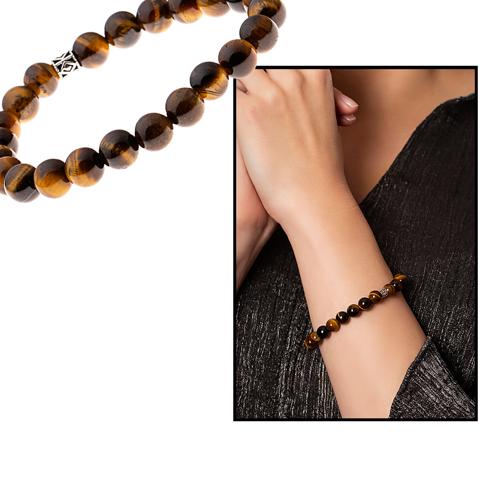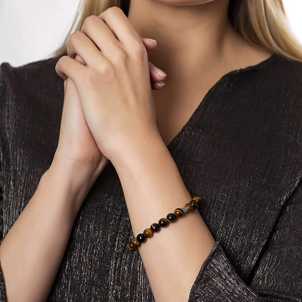 925 Ayar Gümüş Baklava Desen Bileşim Küre Kesim Kaplan Gözü Kadın Bileklik