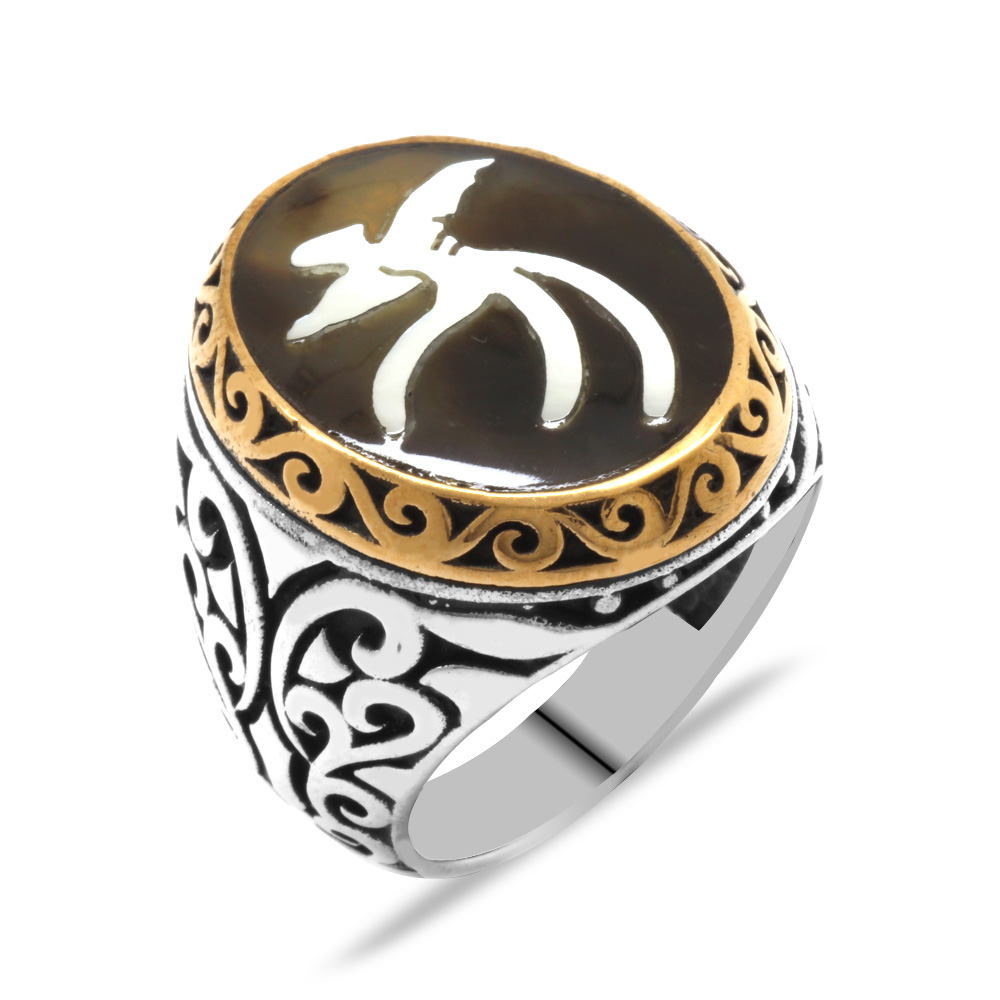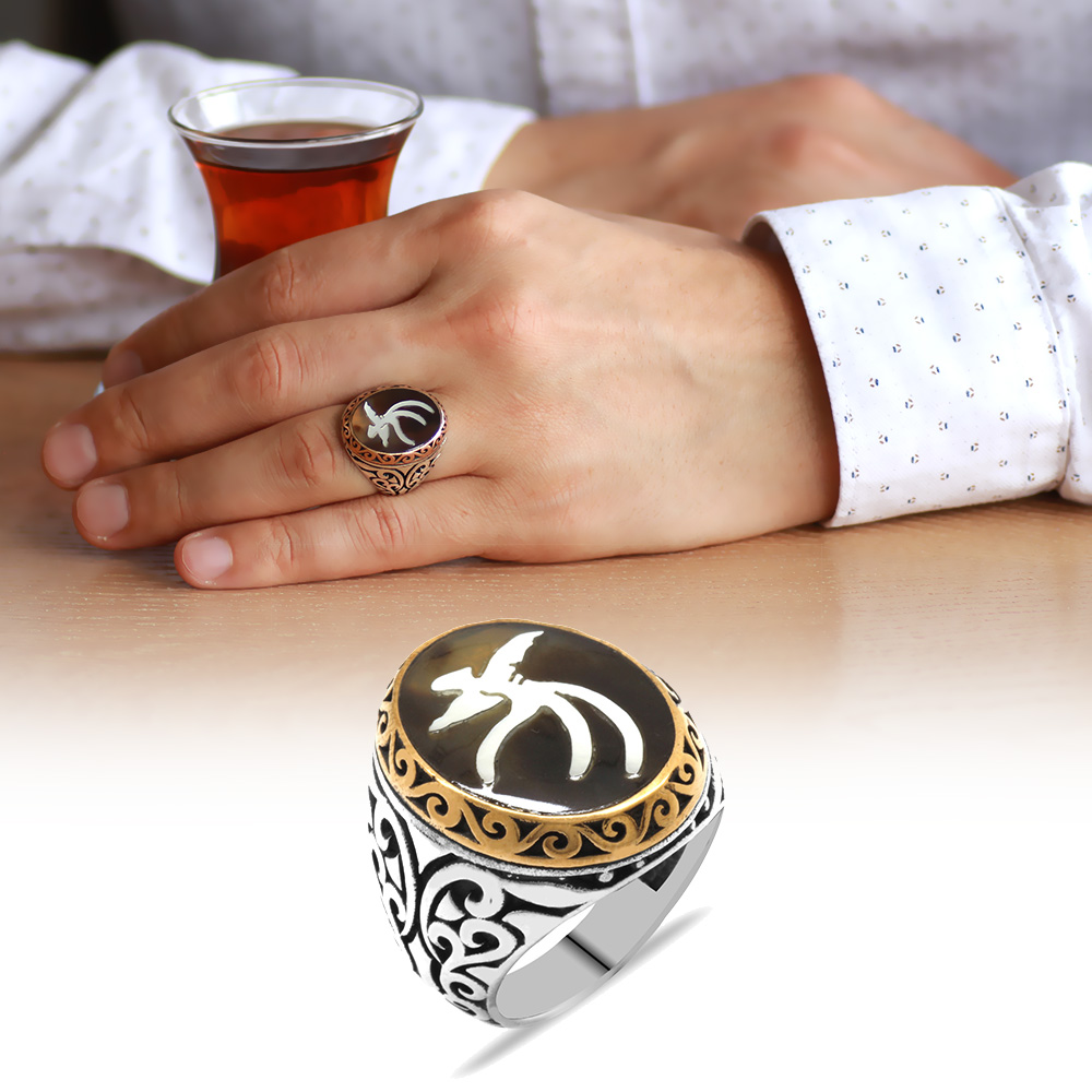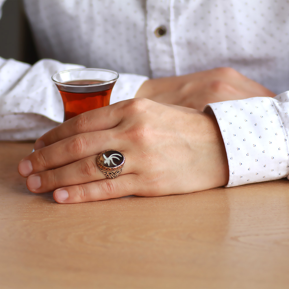 Bağa Üzerine Sedef Kakma Semazen Motifli El İşçiliği 925 Ayar Gümüş Yüzük