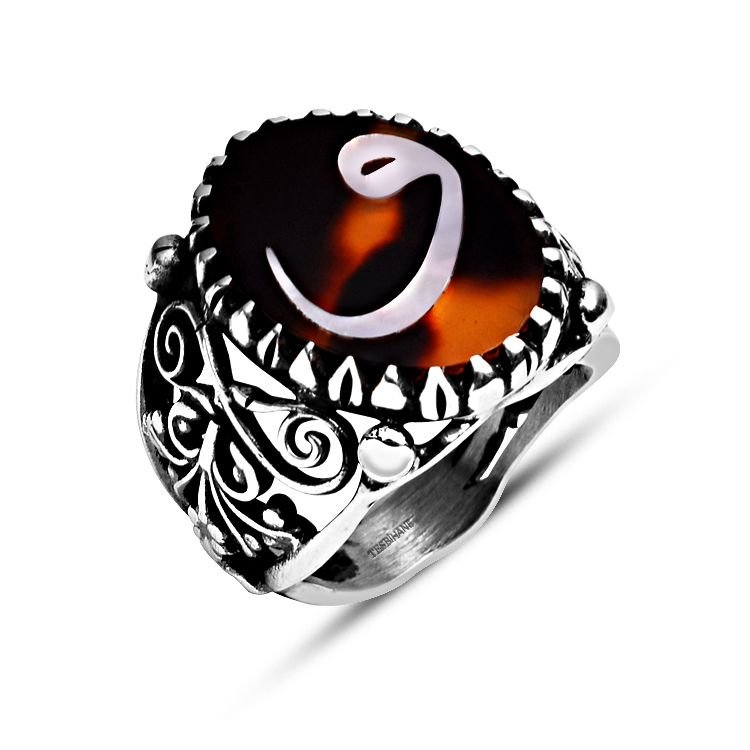 Bağa Üzerine Sedef Kakma Vav Motifli Şık Tasarım El İşçiliği 925 Ayar Gümüş Yüzük