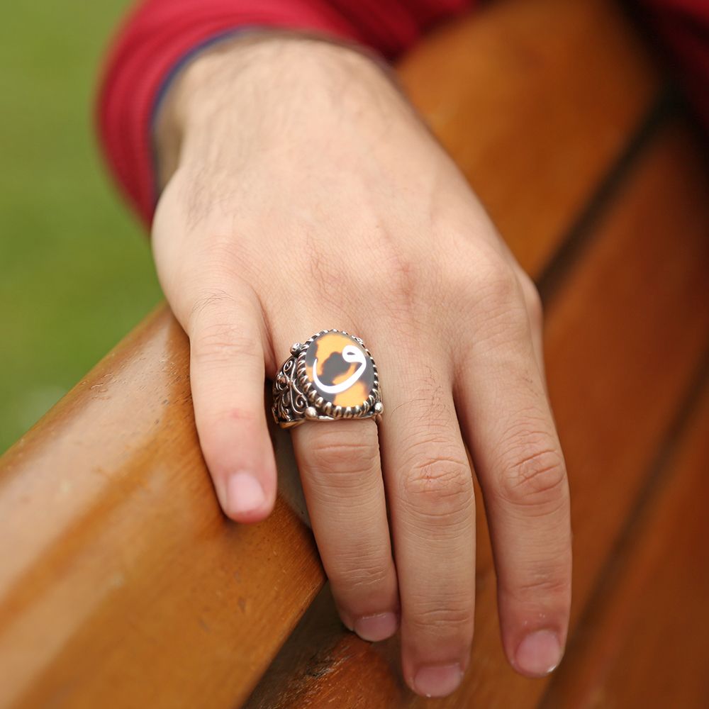 Bağa Üzerine Sedef Kakma Vav Motifli Şık Tasarım El İşçiliği 925 Ayar Gümüş Yüzük - 4