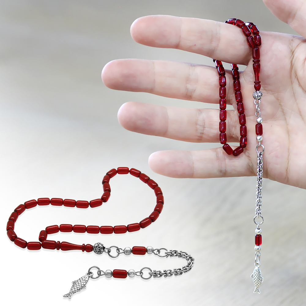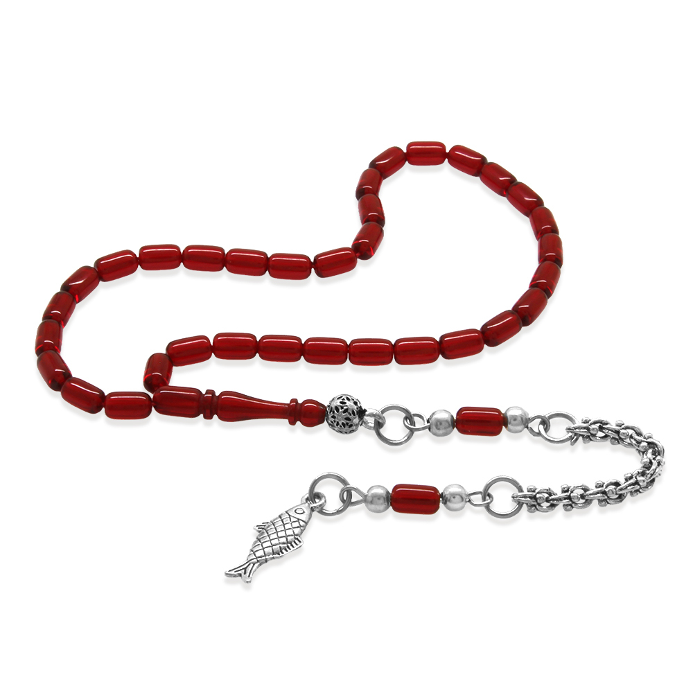Kararmaz Metal Arnavut Püsküllü Kapsül Kesim Kırmızı Siyah Mini Boy Ateş Kehribar Tesbih