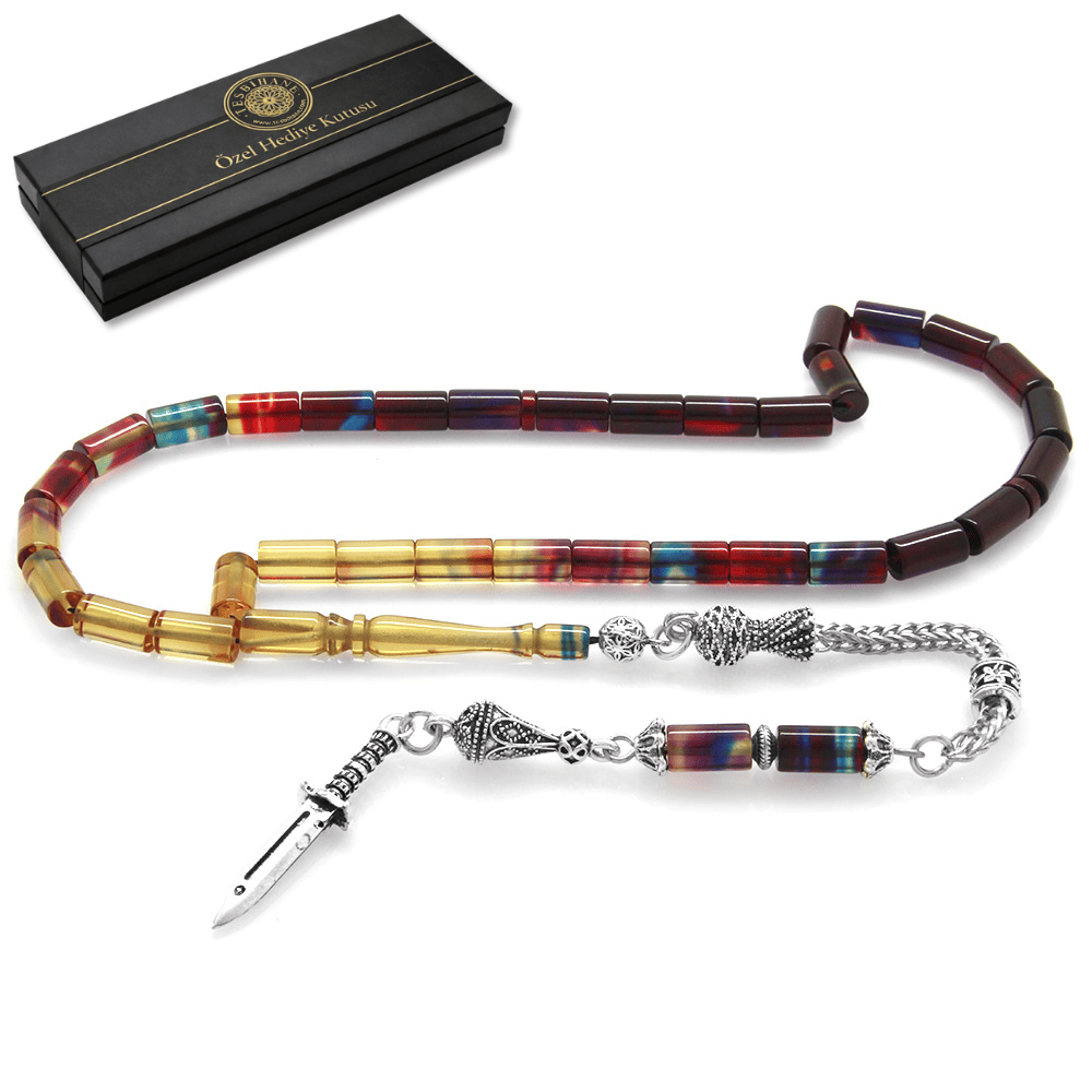 Kararmaz Metal Kama Püsküllü Kesme Kesim Süzme Bonibon Ateş Kehribartesbih - 1
