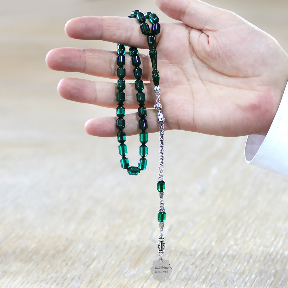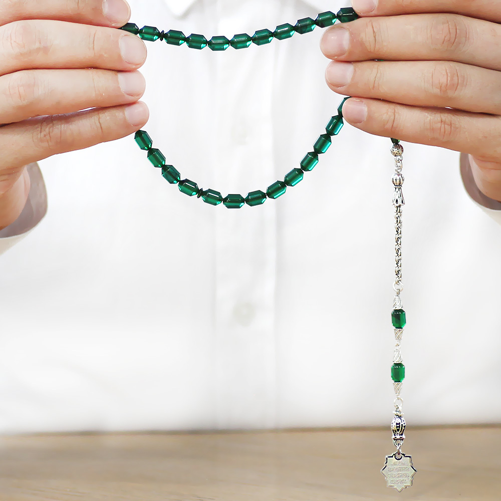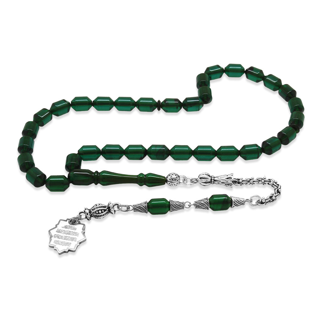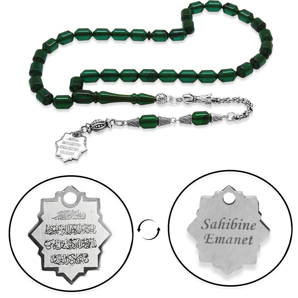 Kararmaz Metal Püsküllü Elmas Kesim İsim Yazılı Nazar Ayeti Plakalı Yeşil Siyah Ateş Kehribar Tesbih