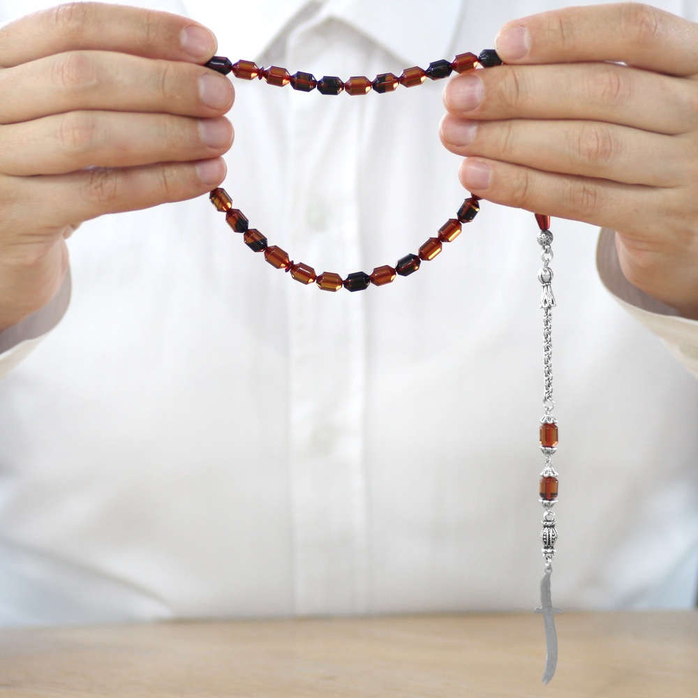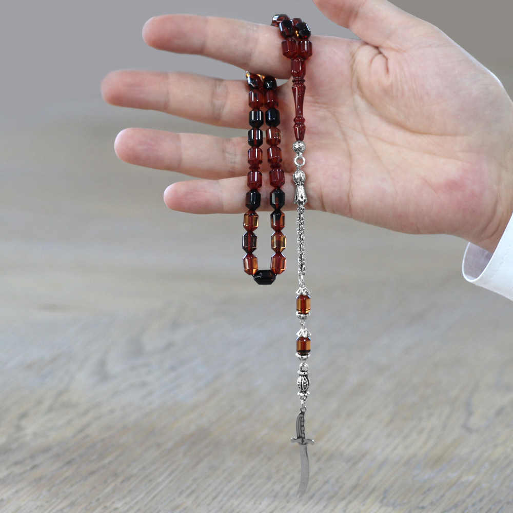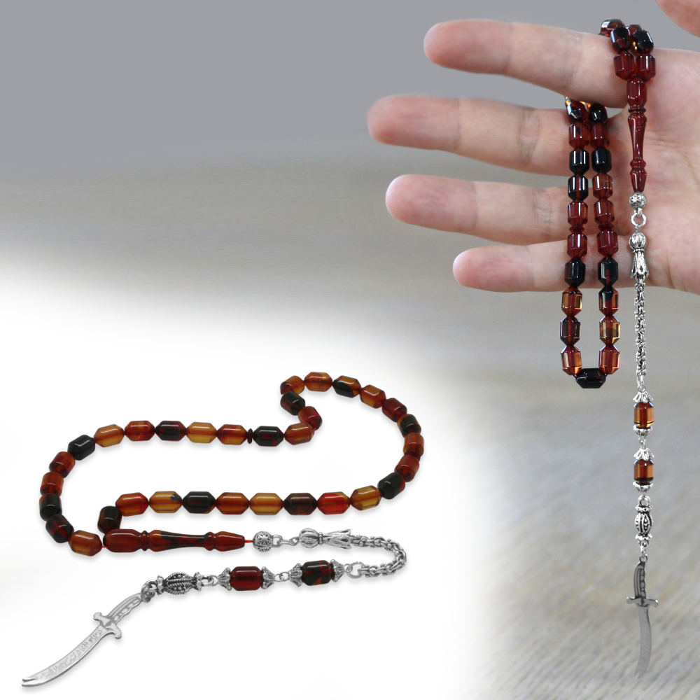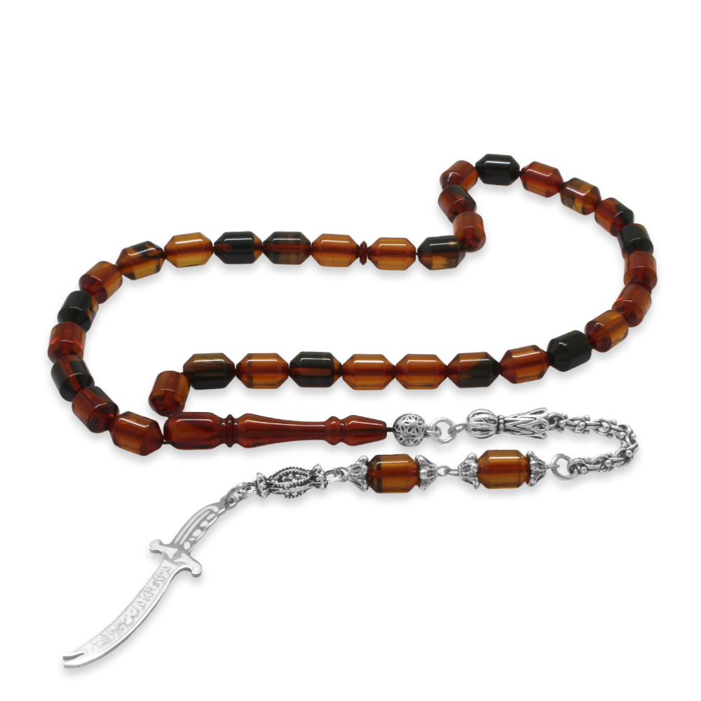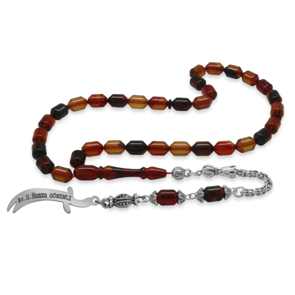 Kararmaz Metal Püsküllü Elmas Kesim İsim Yazılı Zülfikar Plakalı Sarı Siyah Ateş Kehribar Tesbih