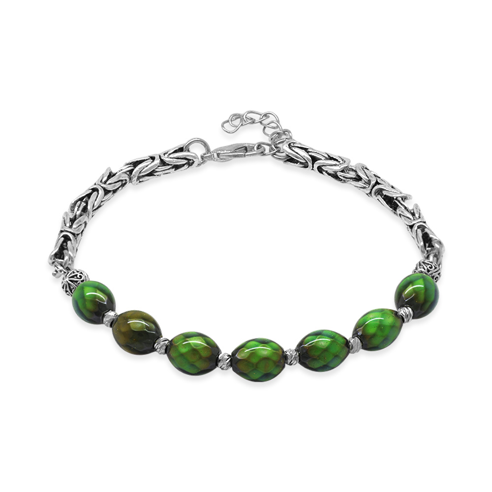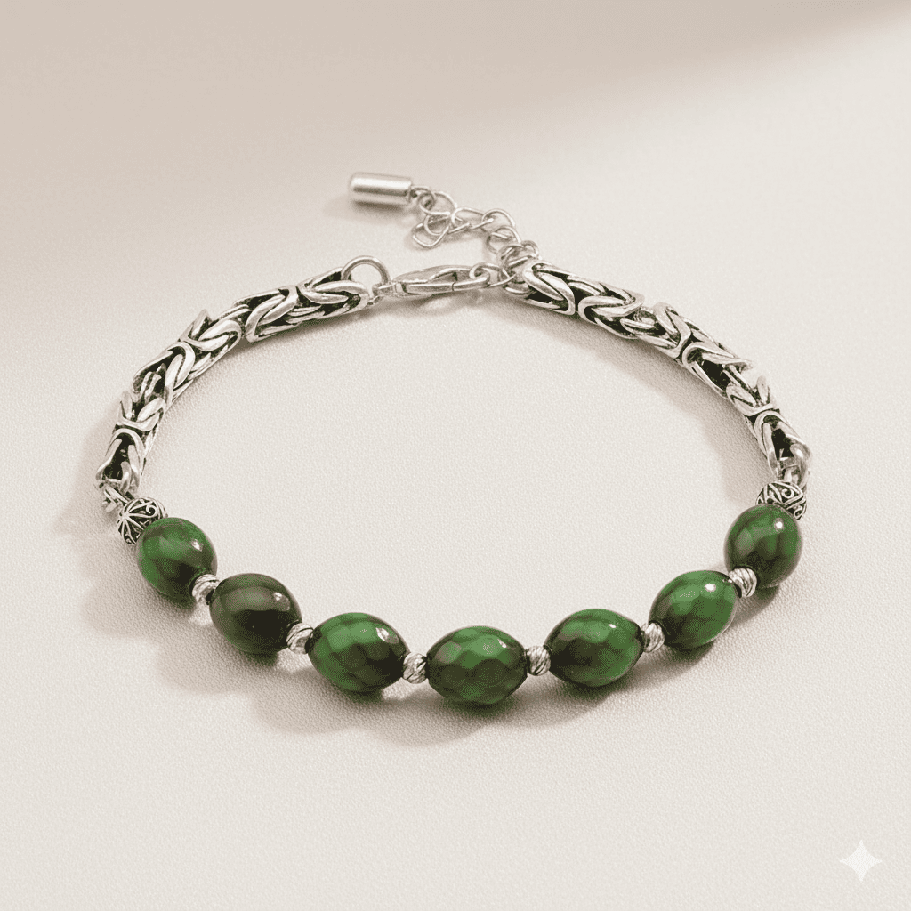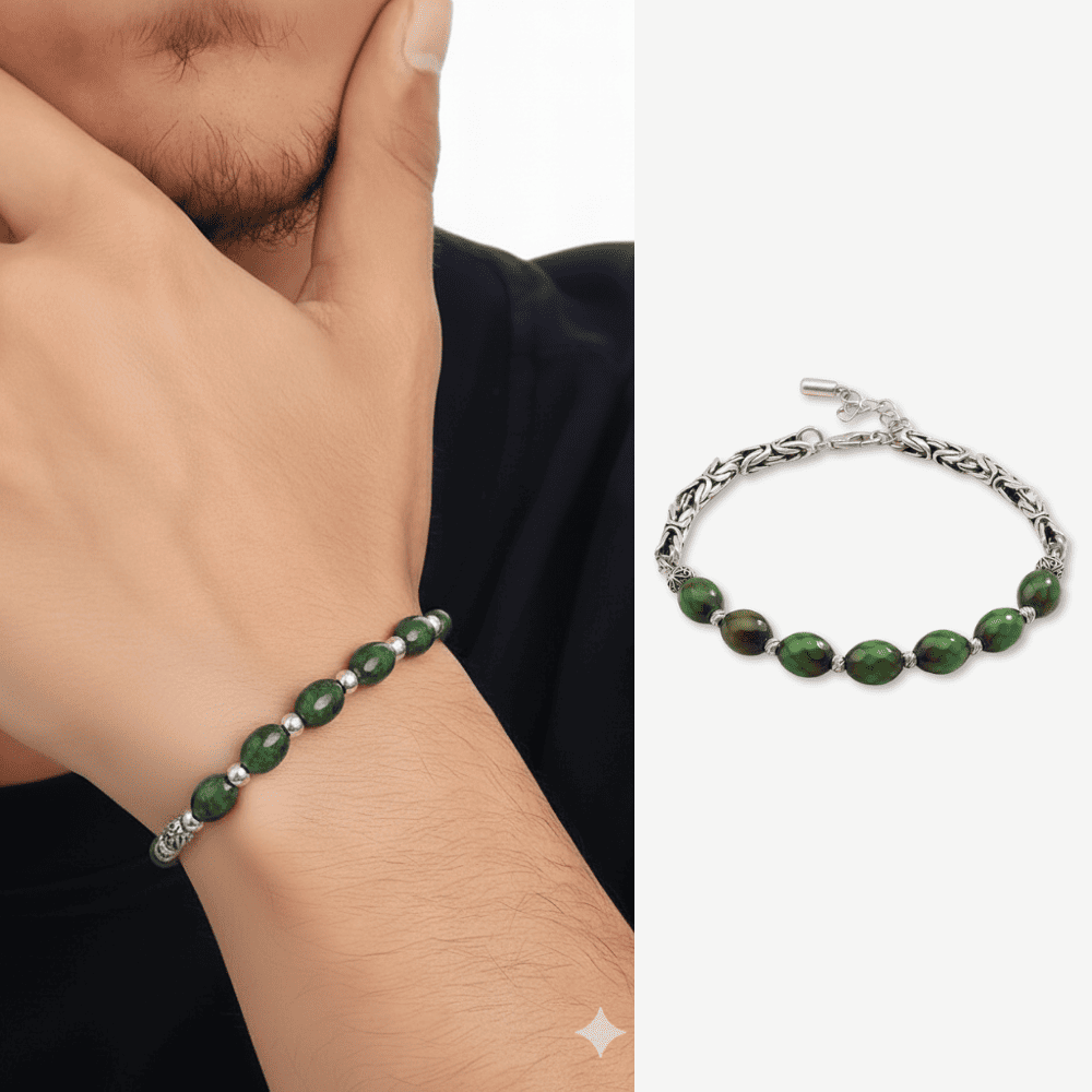 Kararmaz Metal Kral Zincirli Arpa Kesim His Taşı Doğaltaş Erkek Bileklik