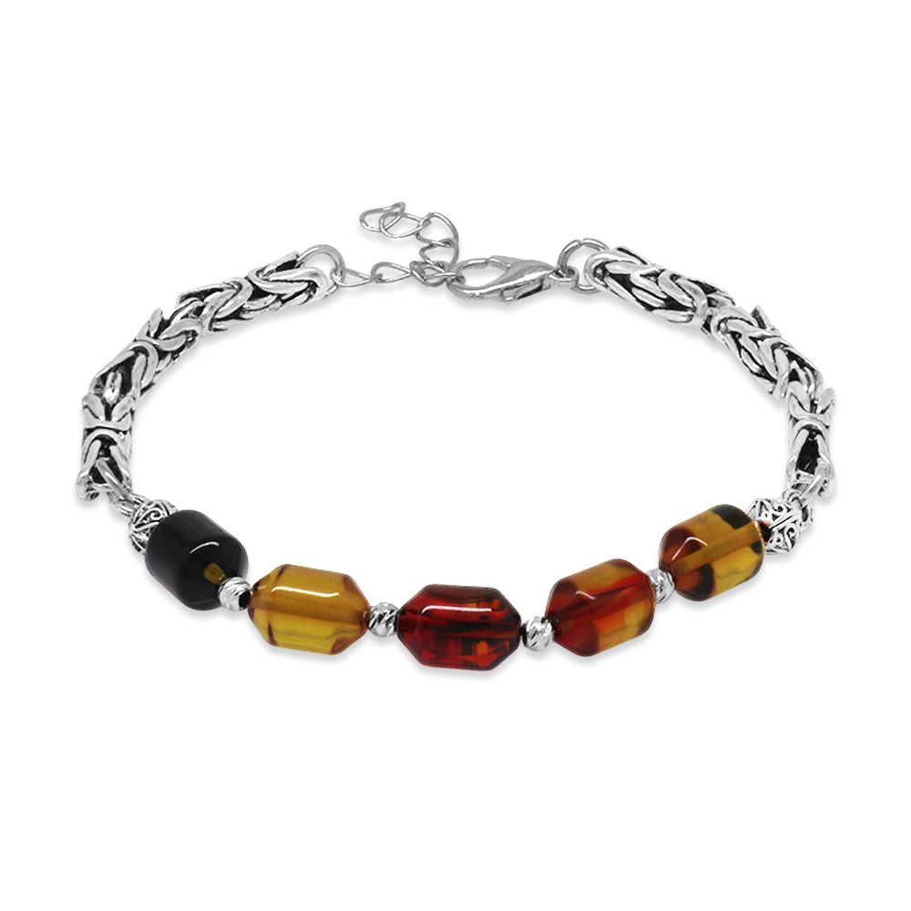 Kararmaz Metal Kral Zincirli Beyaz Dorika Top Süslemeli Bala Siyah Ateş Kehribar Erkek Bileklik