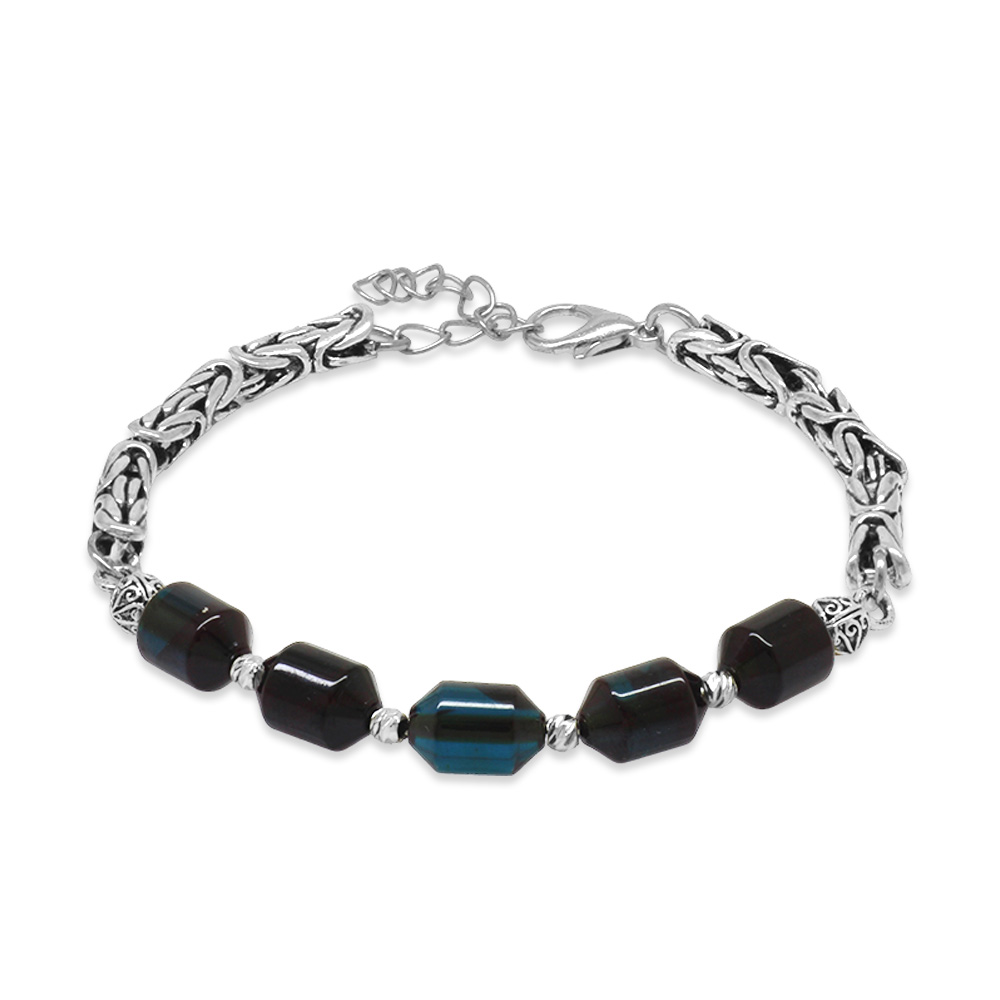 Kararmaz Metal Kral Zincirli Beyaz Dorika Top Süslemeli Su Mavisi Siyah Ateş Kehribar Erkek Bileklik
