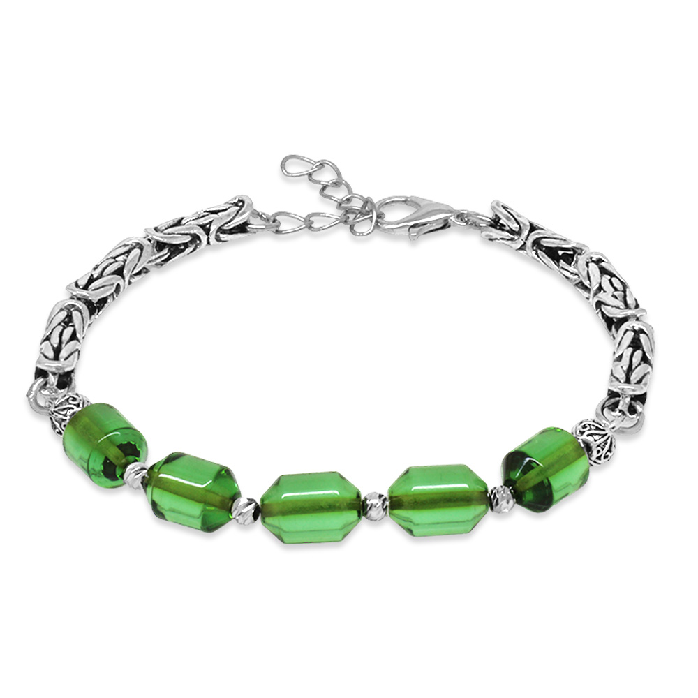 Kararmaz Metal Kral Zincirli Beyaz Dorika Top Süslemeli Su Yeşili Ateş Kehribar Erkek Bileklik