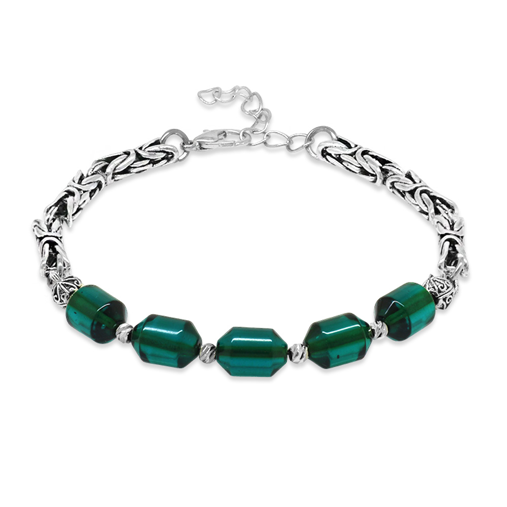 Kararmaz Metal Kral Zincirli Beyaz Dorika Top Süslemeli Turkuaz Ateş Kehribar Erkek Bileklik