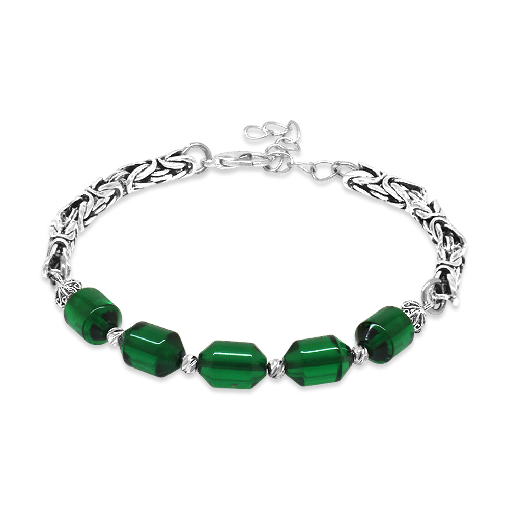 Kararmaz Metal Kral Zincirli Beyaz Dorika Top Süslemeli Yeşil Ateş Kehribar Erkek Bileklik