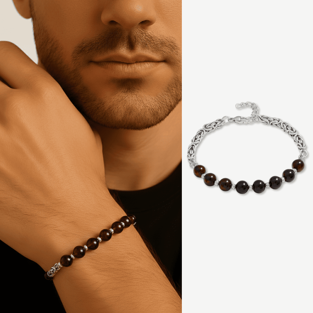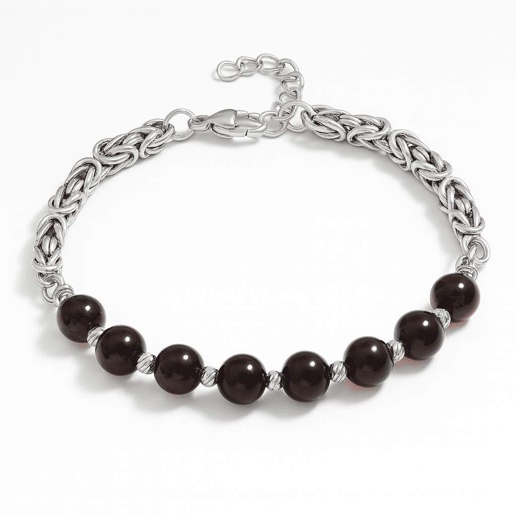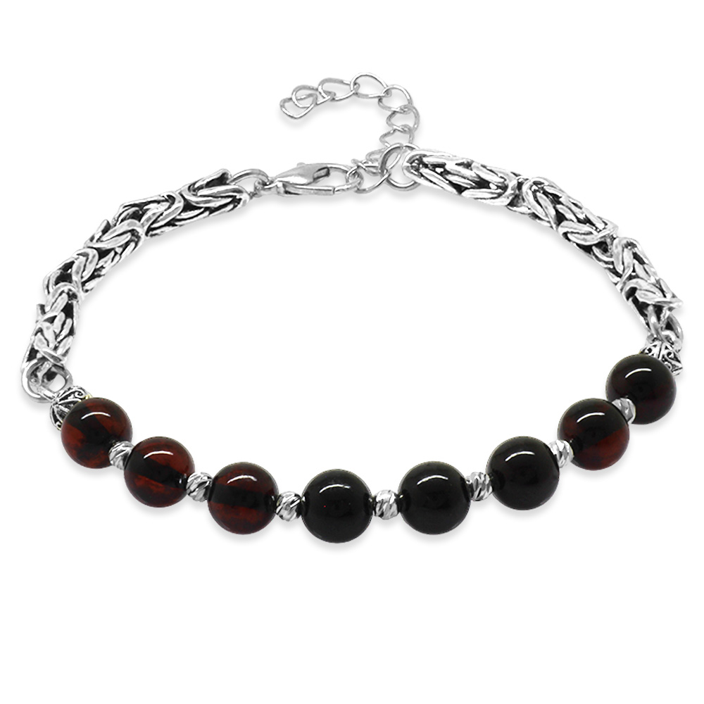 Kararmaz Metal Kral Dorika Top Süslemeli Küre Kesim Kırmızı Renk Doğal Damla Kehribar Erkek Bileklik