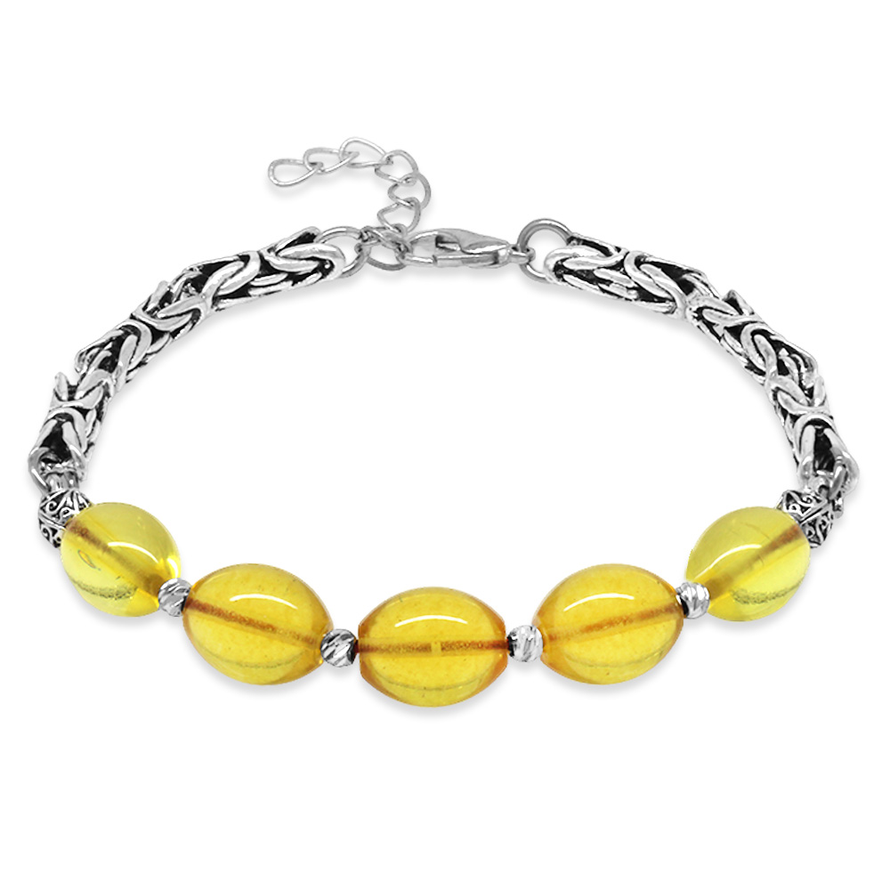 Kararmaz Metal Kral Zincirli Ihlamur Sarı Damla Kehribar Erkek Bileklik