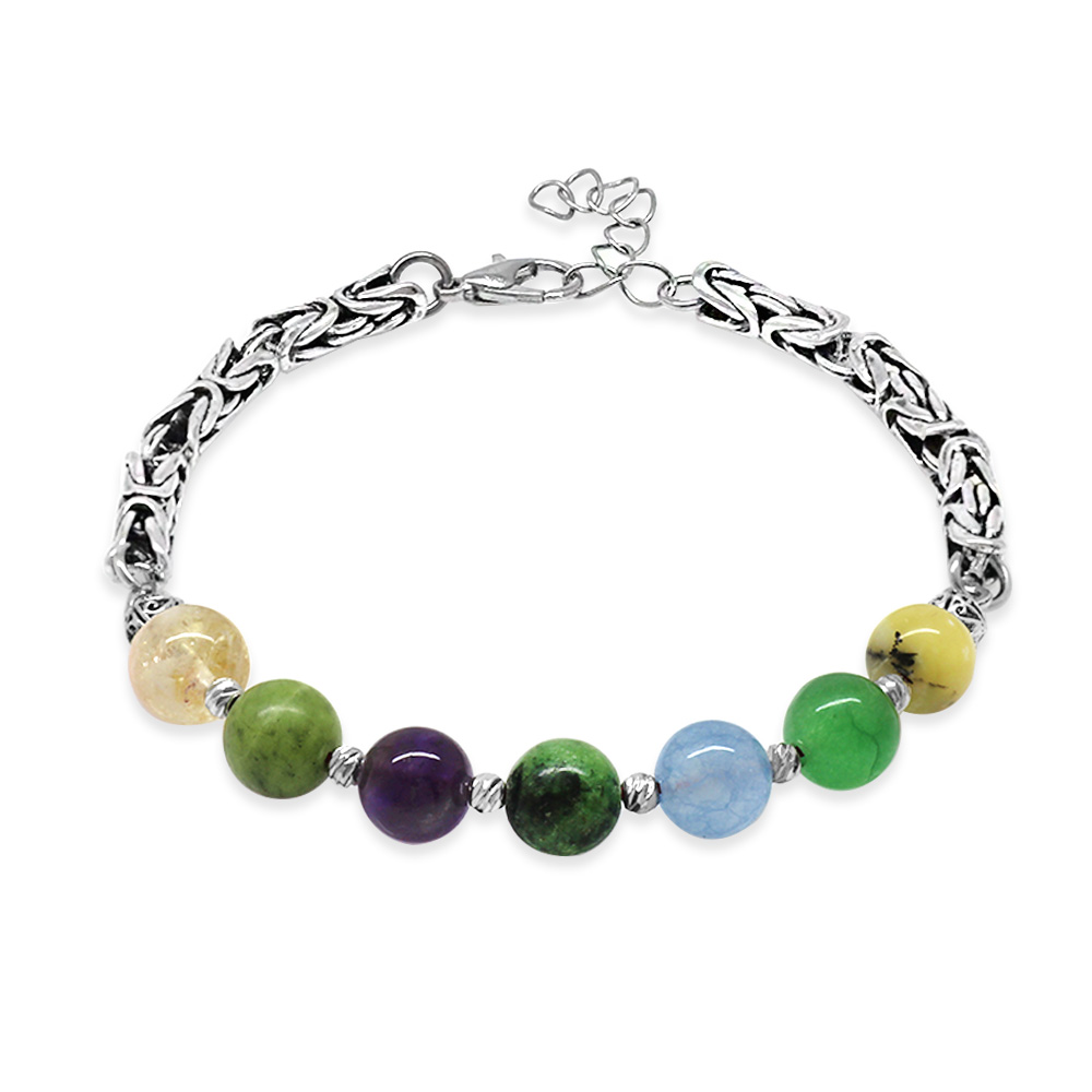 Kararmaz Metal Kral Zincirli Küre Kesim Çoklu Doğaltaş Kombinli Erkek Şifa Bilekliği