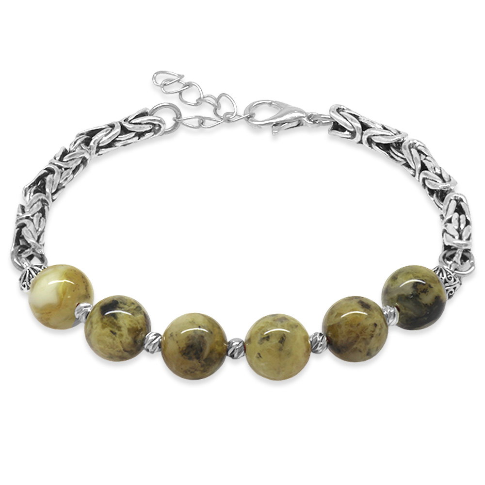 Kararmaz Metal Kral Zincirli Küre Kesim Dalmaçya Damla Kehribar Erkek Bileklik - 1
