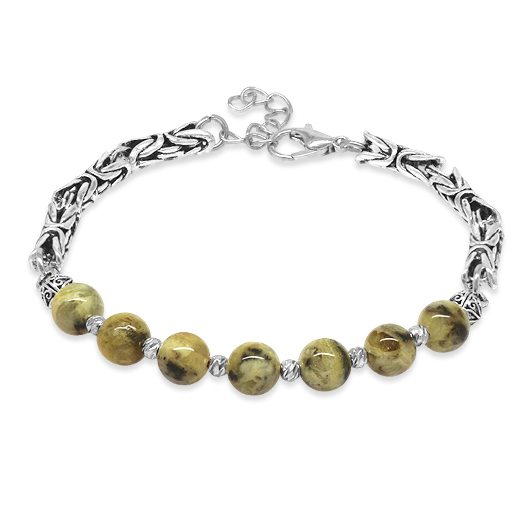Kararmaz Metal Kral Zincirli Küre Kesim Dorika Top Süslemeli Dalmaçya Damla Kehribar Erkek Bileklik
