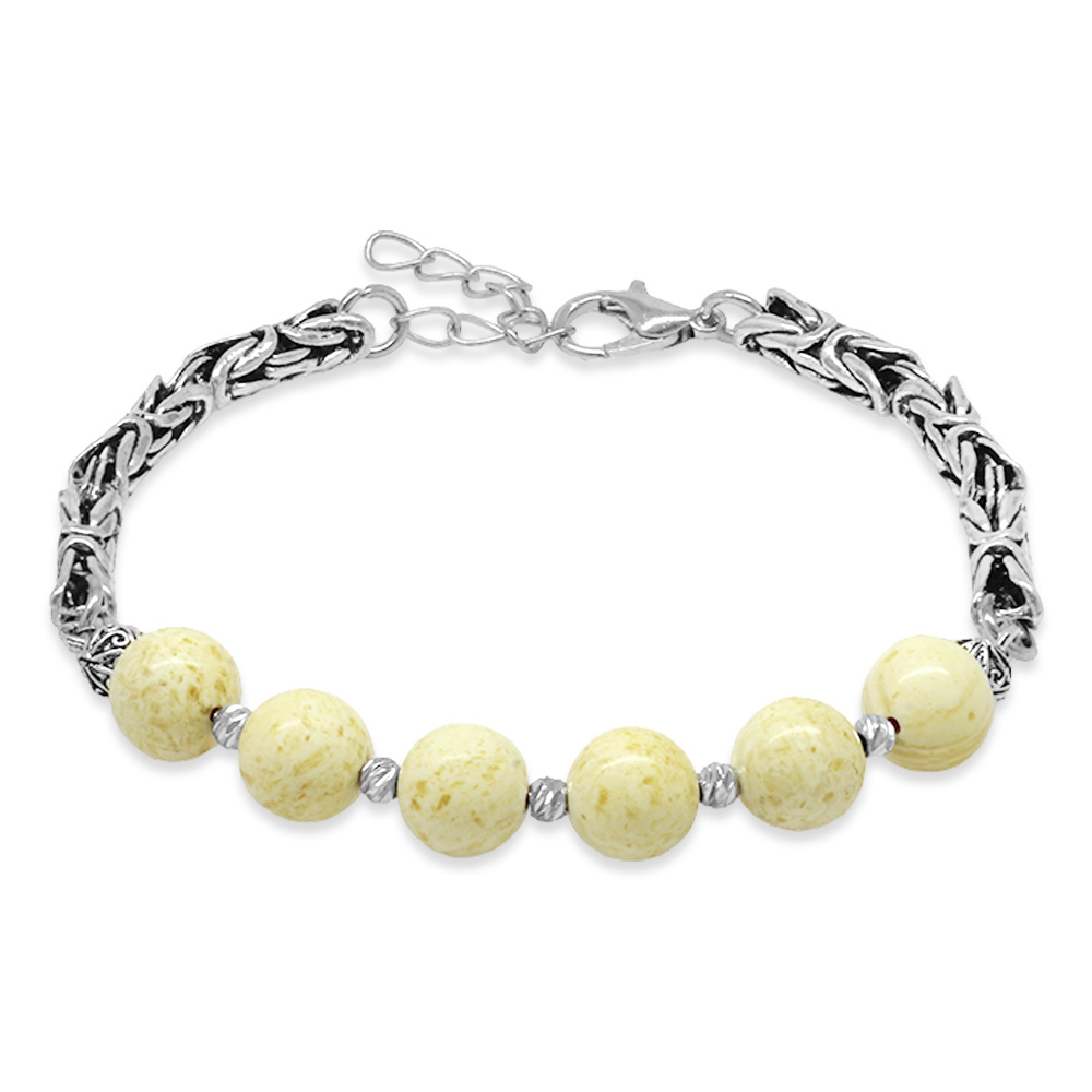 Kararmaz Metal Kralli Küre Kesim Dorika Top Süslemeli King Seccer Damla Kehribar Erkek Bileklik