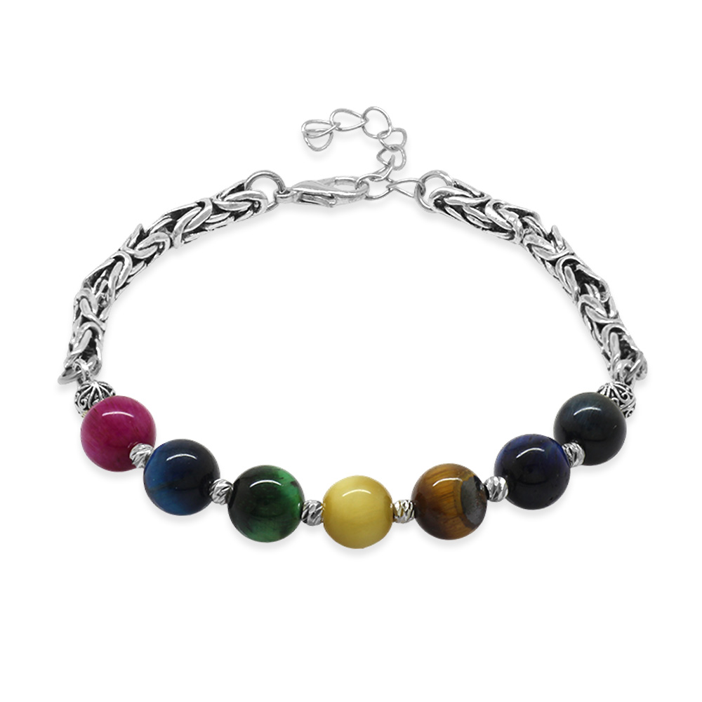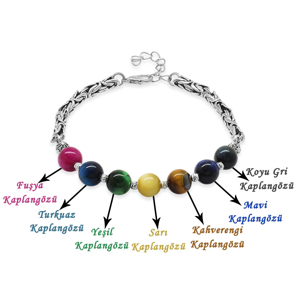 Kararmaz Metal Kral Zincirli Küre Kesim Kaplan Gözü Doğaltaş Kombinli Erkek Enerji Bilekliği