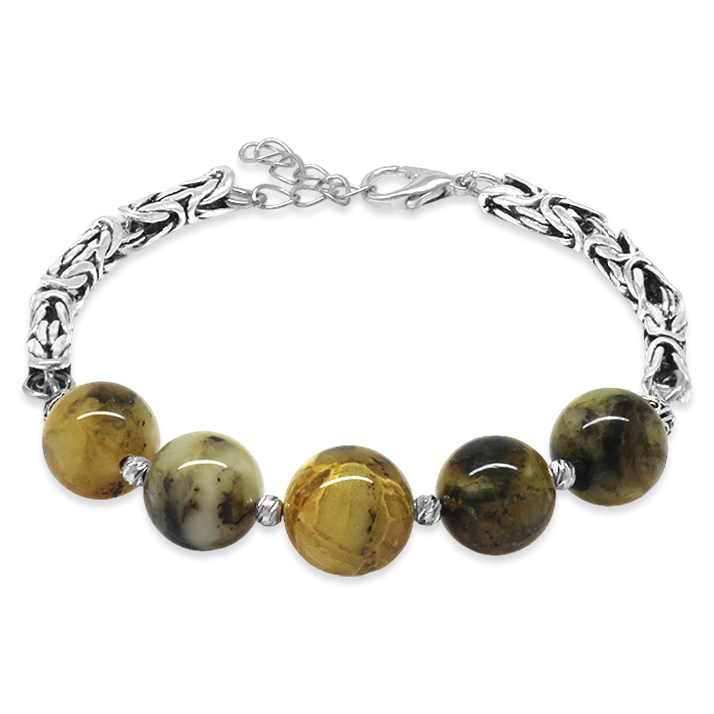 Kararmaz Metal Kral Zincirli Küre Kesim Maxi Boy Dalmaçya Damla Kehribar Erkek Bileklik - 1