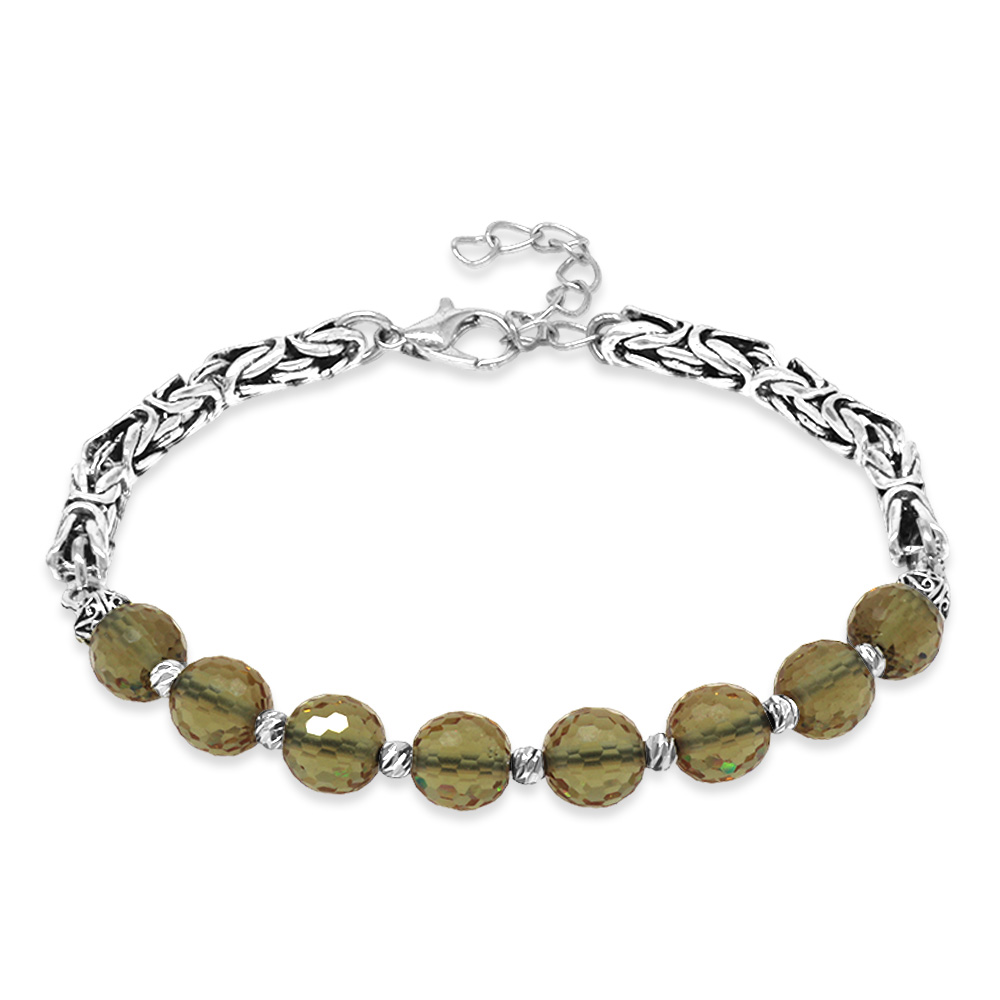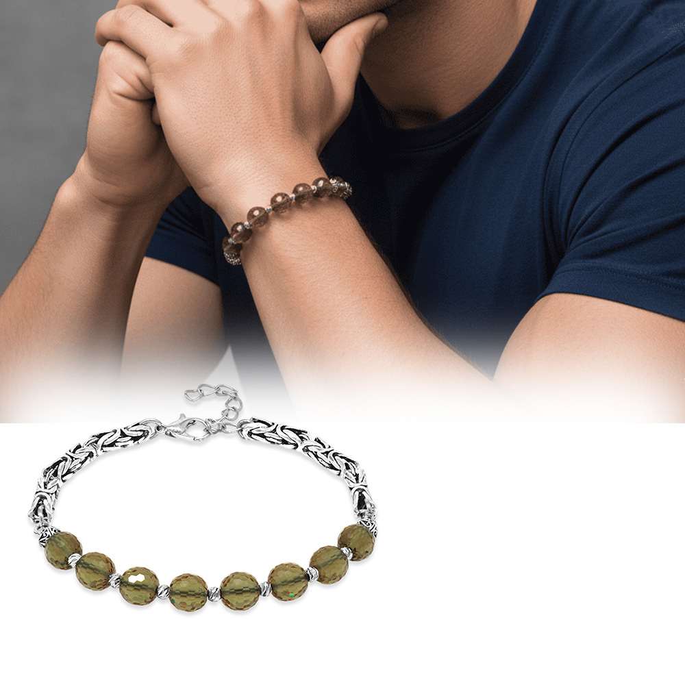 Kararmaz Metal Kral Gümüş Renk Dorika Top Süslemeli Küre Kesim Fasetalı Zultanit Taşı Erkek Bileklik